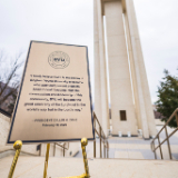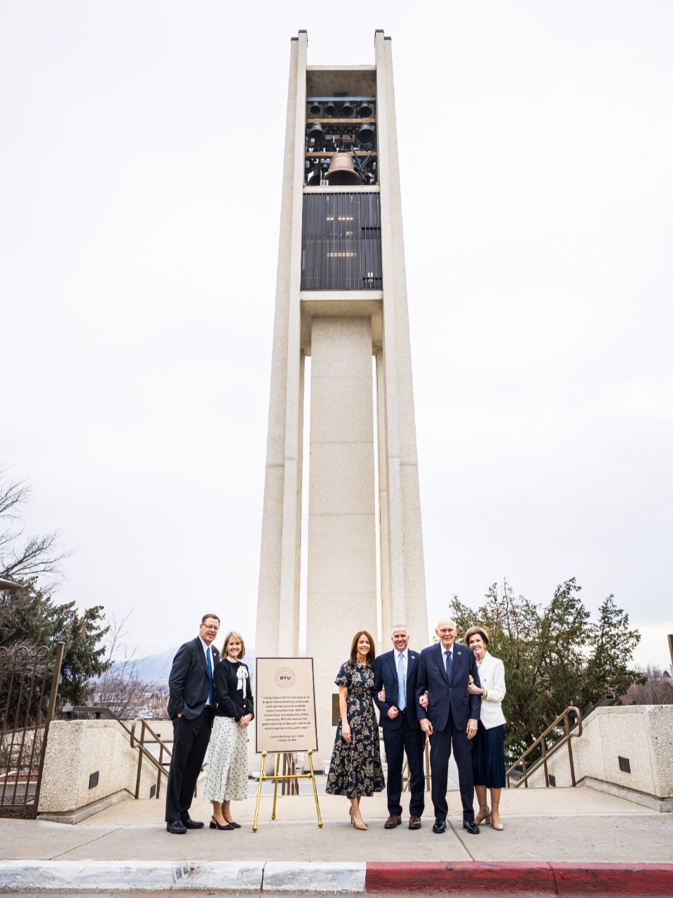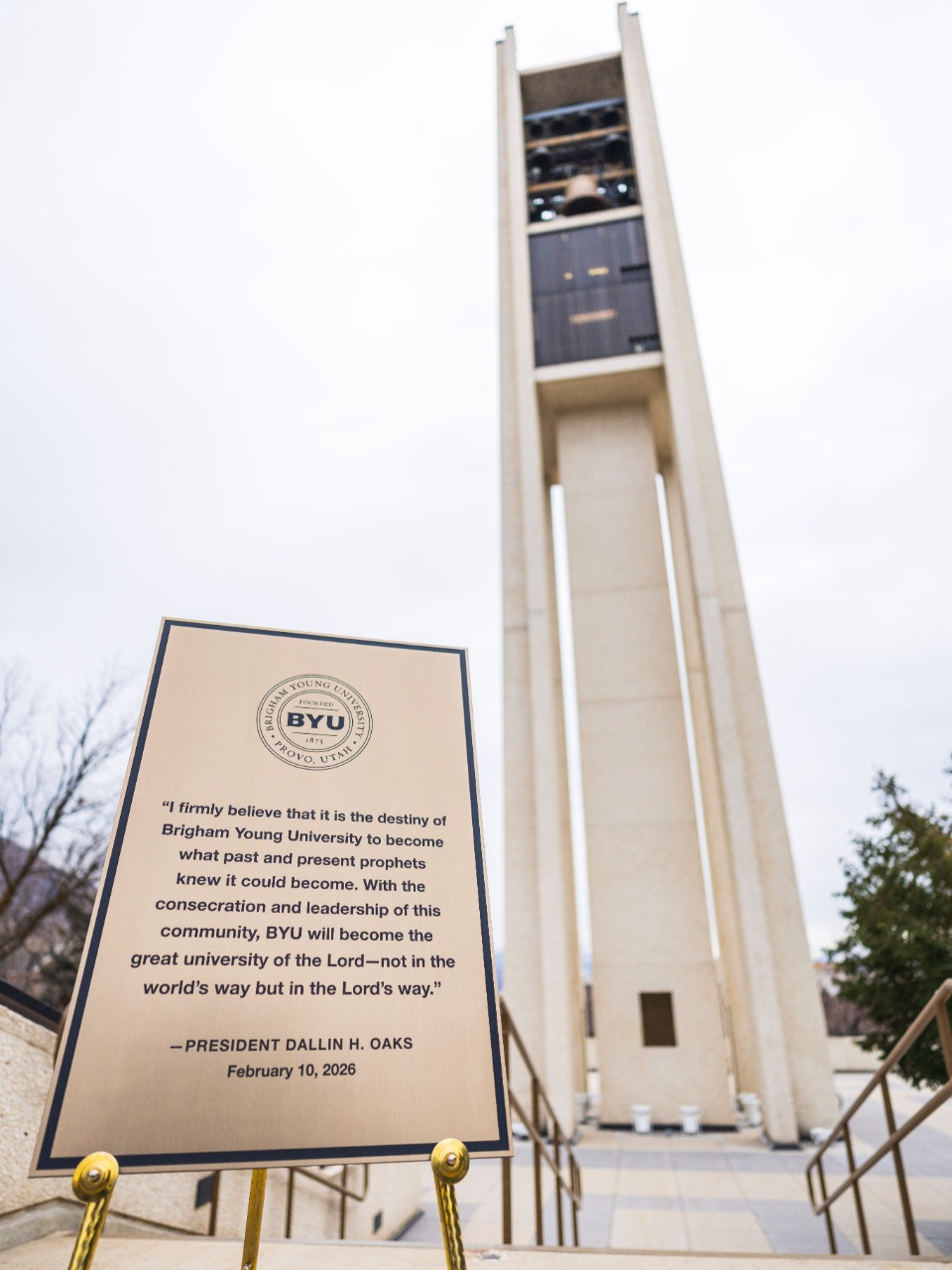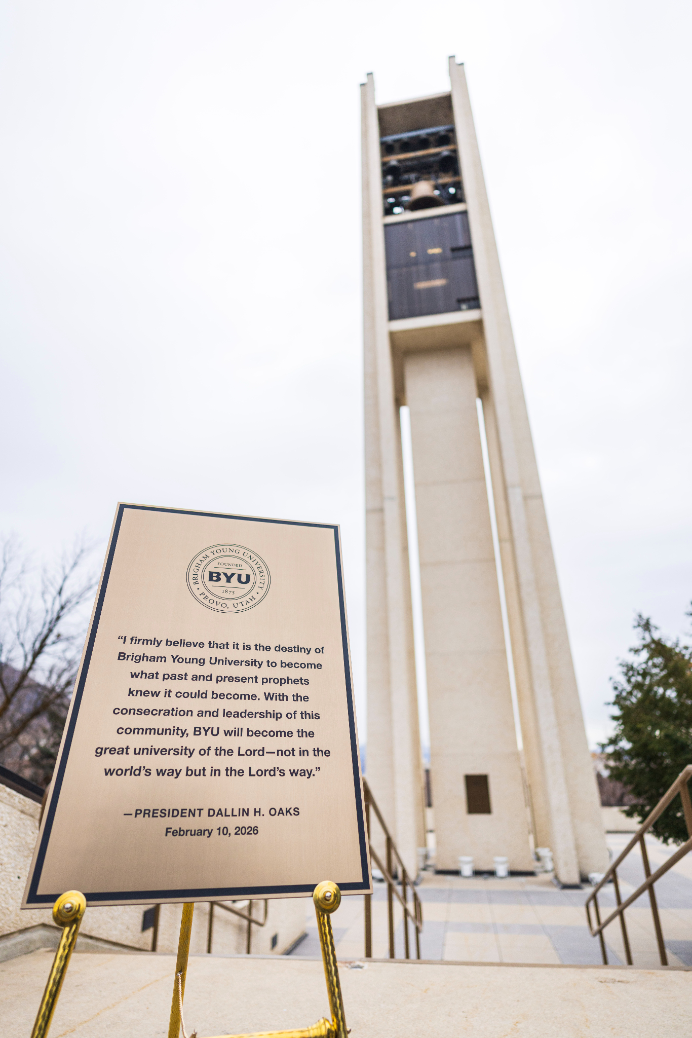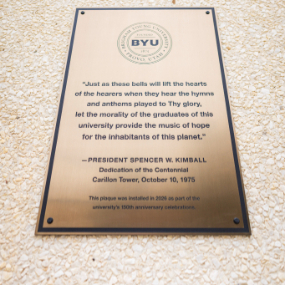 This plaque will be placed at the Carillon Bell Tower and will accompany a separate one from former Church President Spencer W. Kimball’s dedication of the musical landmark on BYU’s campus on October 10, 1975.