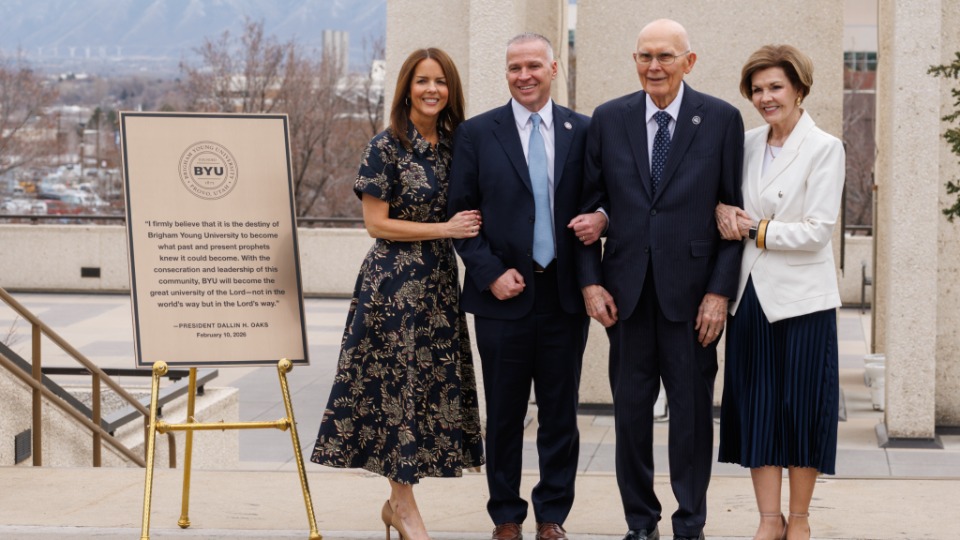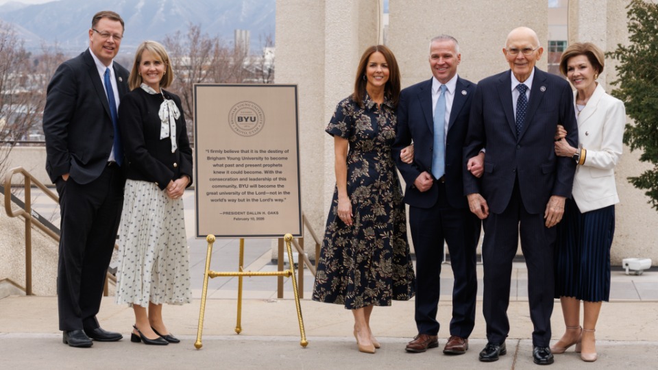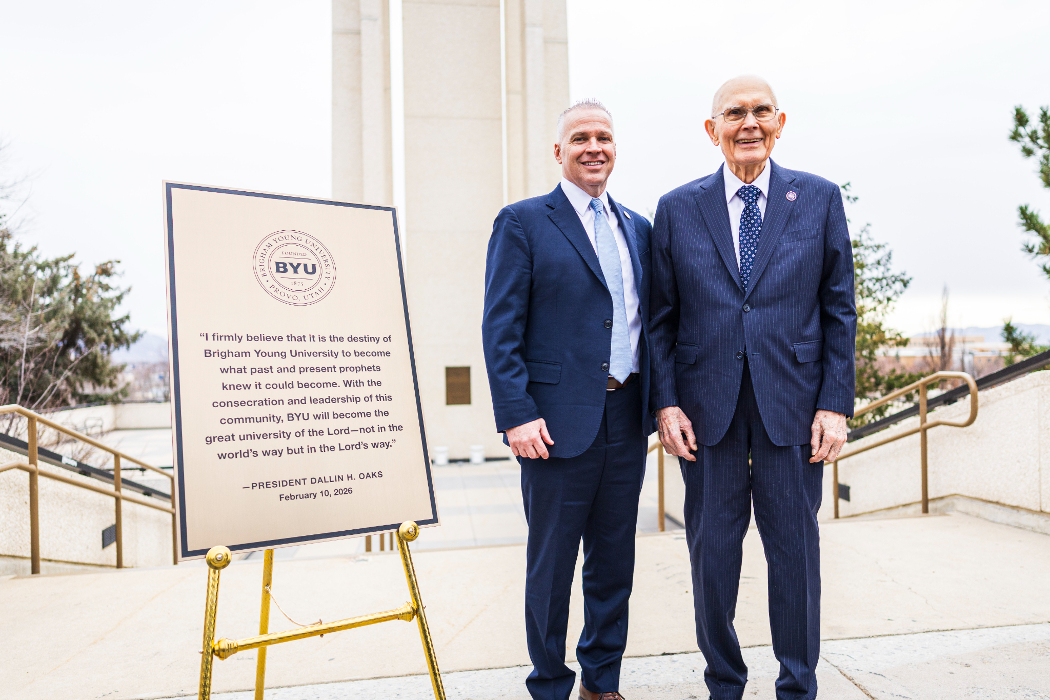 At a special presentation following his devotional address at Brigham Young University (BYU) on Tuesday, February 10, 2026, a plaque was unveiled honoring President Dallin H. Oaks of The Church of Jesus Christ of Latter-day Saints with an inscription from his talk.