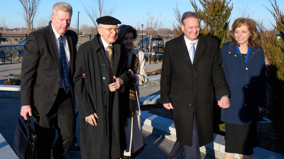 President Oaks was joined at the dedicatory service in Burley by his wife, Kristen, and several Church leaders: Elder Steven R. Bangerter, Executive Director of the Temple Department, and his wife, Susan; Elder José A. Teixeira, United States Central Area President, and his wife, Filomena; and Elder K. Brett Nattress, General Authority Seventy, and his wife, Shawna.