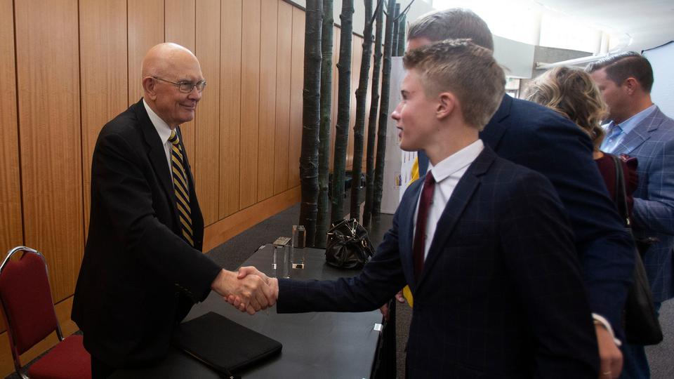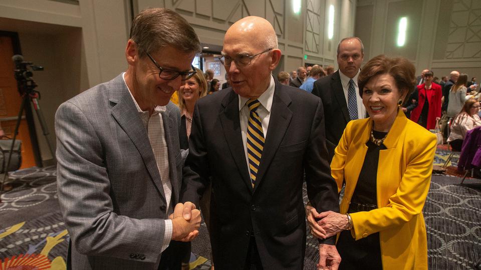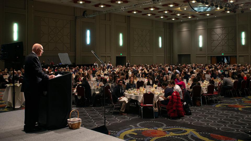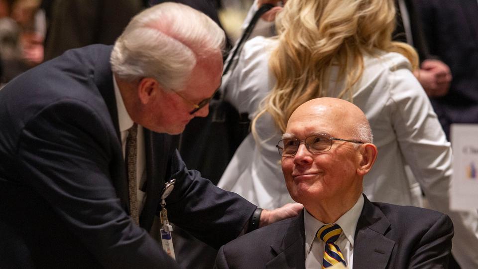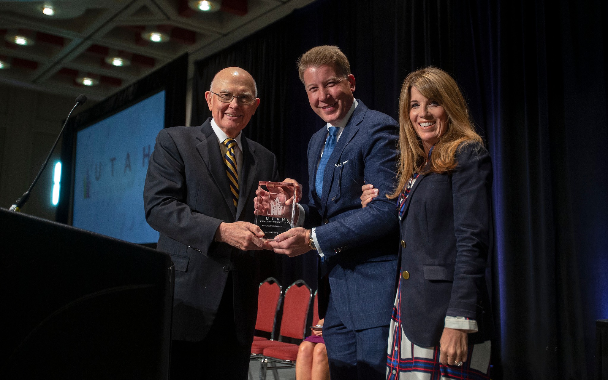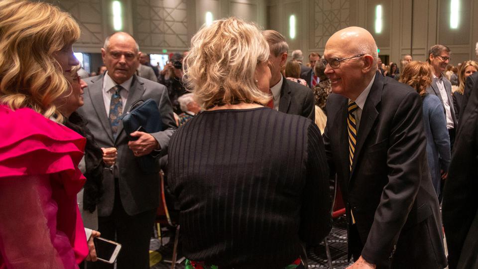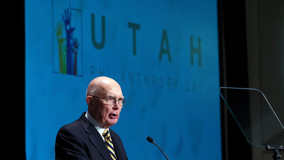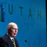 President Dallin H. Oaks of the First Presidency of The Church of Jesus Christ of Latter-day Saints spoke Tuesday in the Salt Palace about the importance of private philanthropy and persuading “citizens to a ‘spirit of giving’ in our communities and in our personal efforts throughout the state.”