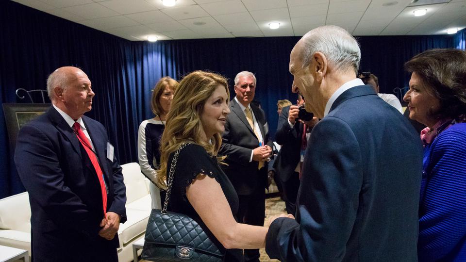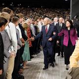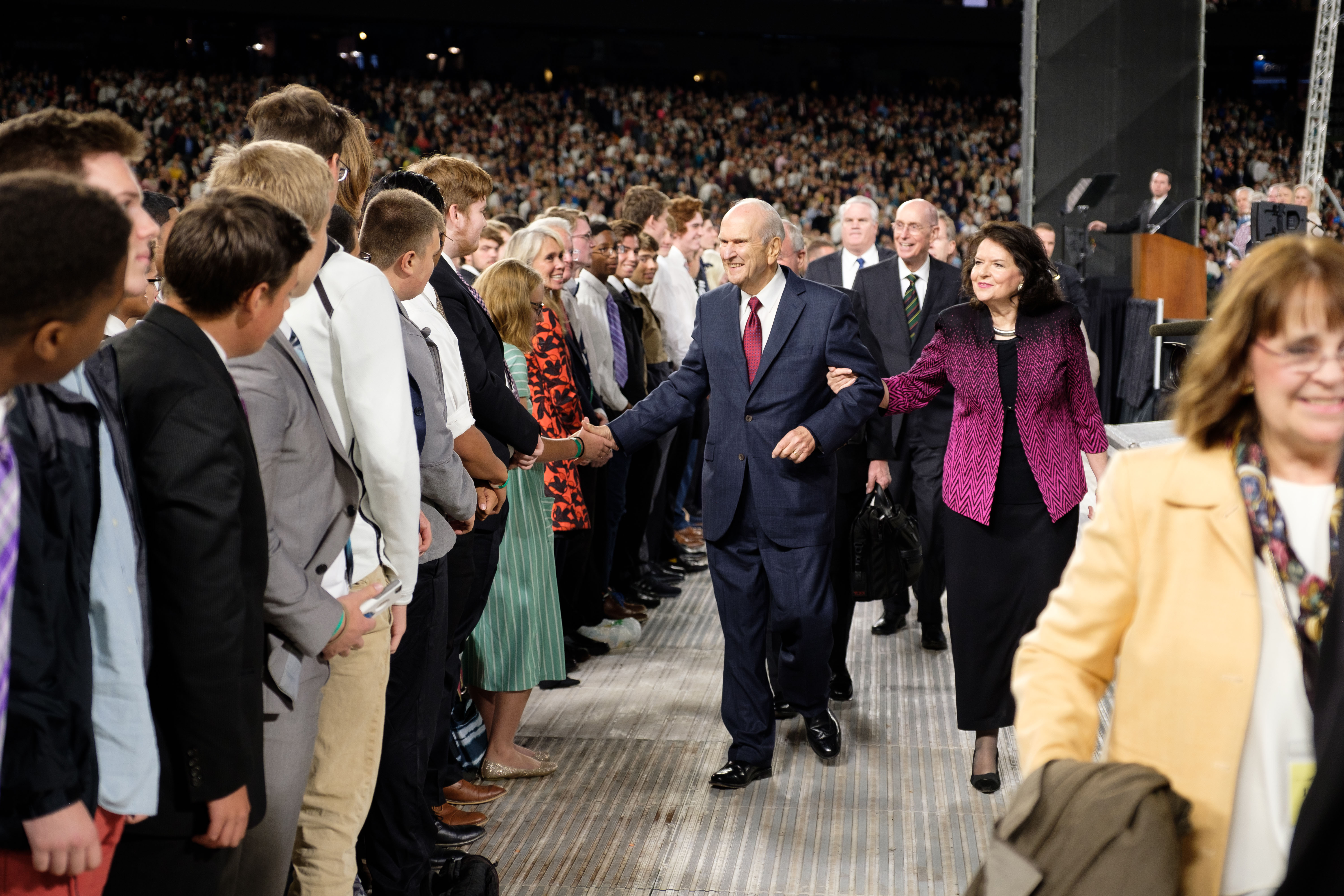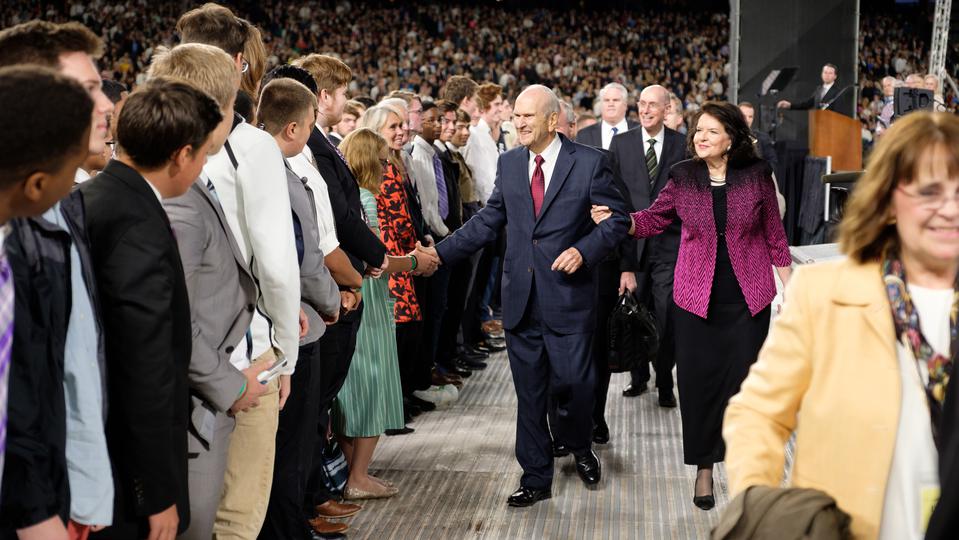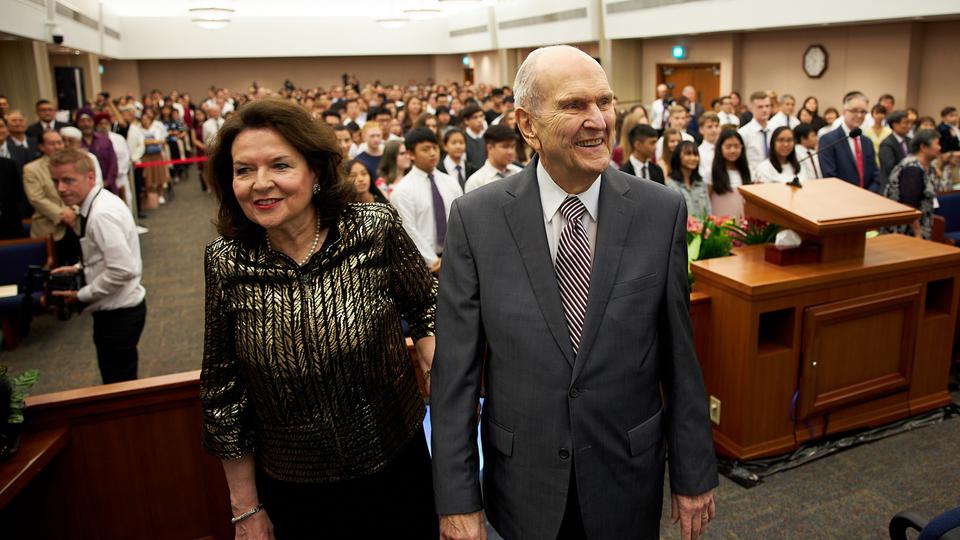 President Russell M. Nelson, his wife, Wendy, and Elder Gary E. Stevenson of the Quorum of the Twelve Apostles, greet Latter-day Saints in Peru for an evening devotional October 20, 2018.2018 by Intellectual Reserve, Inc. All rights reserved.“I was once with him, and he broke into Russian as part of a communication with a Russian-speaking person,” President Oaks said. “I know that he learned enough Chinese to participate in an open-heart surgery operation in China, giving instructions in Chinese, in the operating room.”