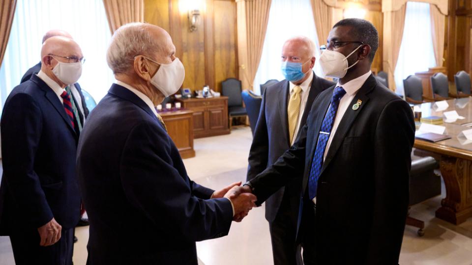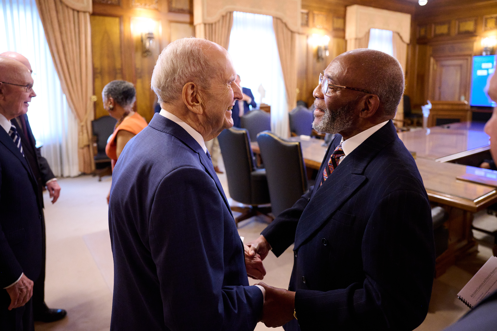 President Nelson greets the Reverend Dr. Amos C. Brown prior to a news conference with NAACP leadership in the Church Administration Building on Temple Square in Salt Lake City on June 14, 2021. 2021 by Intellectual Reserve, Inc. All rights reserved.A Man Who Changed the Church