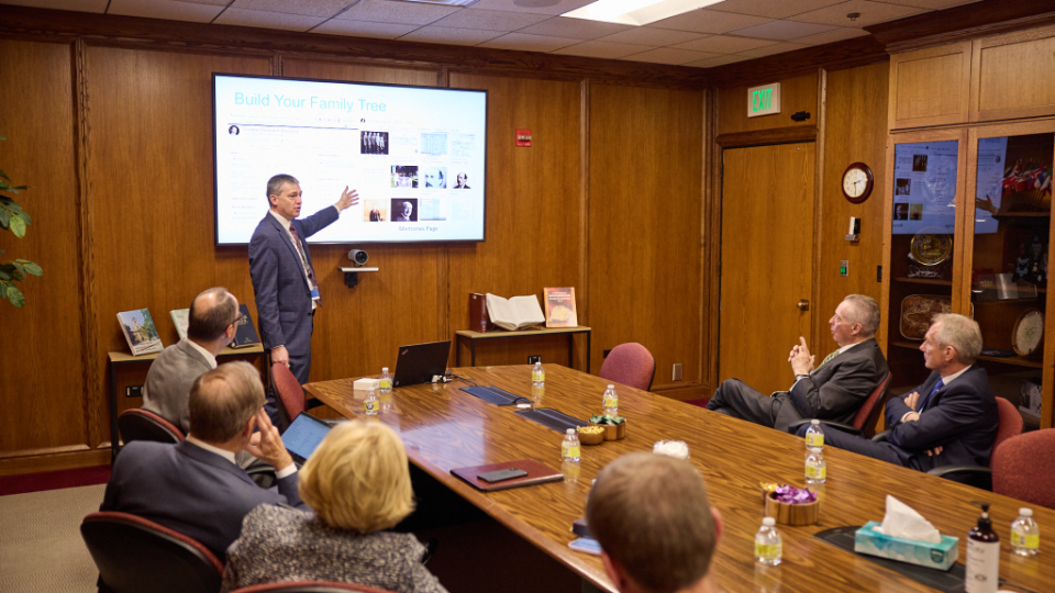 Korosi also met with Elder David A. Bednar of the Quorum of the Twelve Apostles during his historic visit to Temple Square and went to the FamilySearch Library during the visit to learn more about his ancestors.