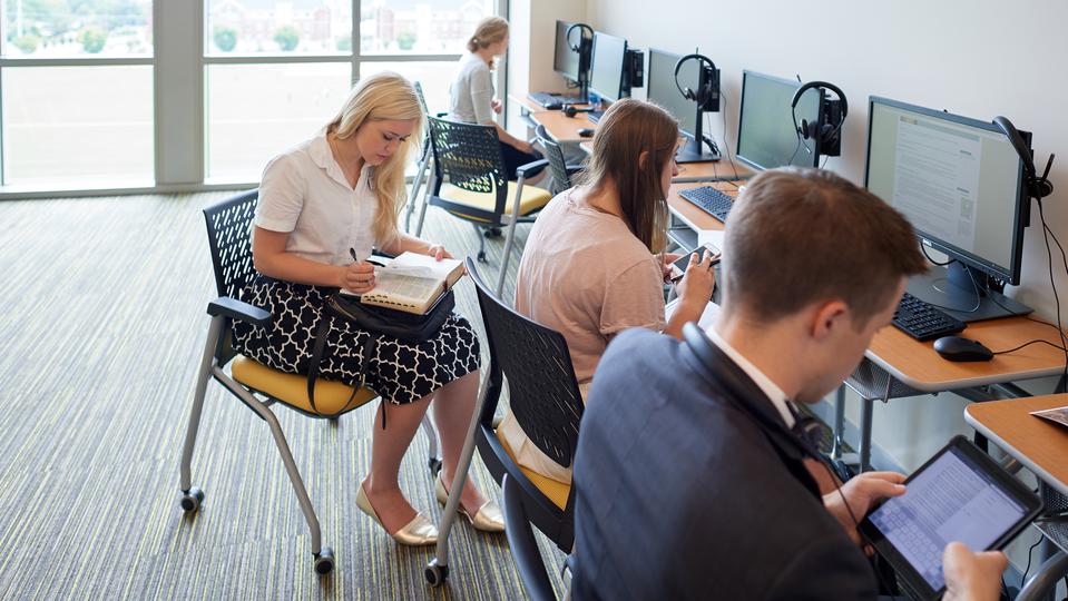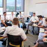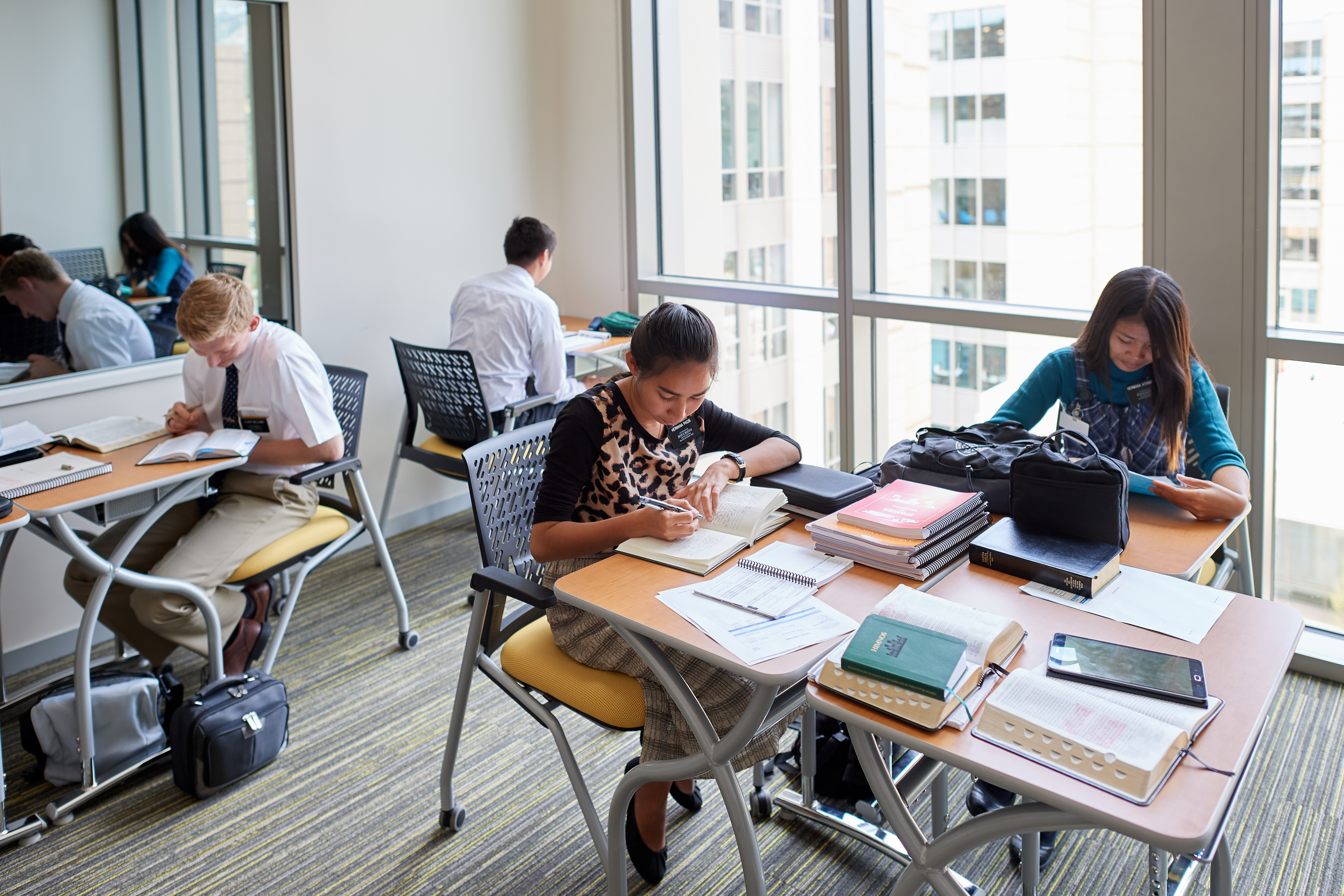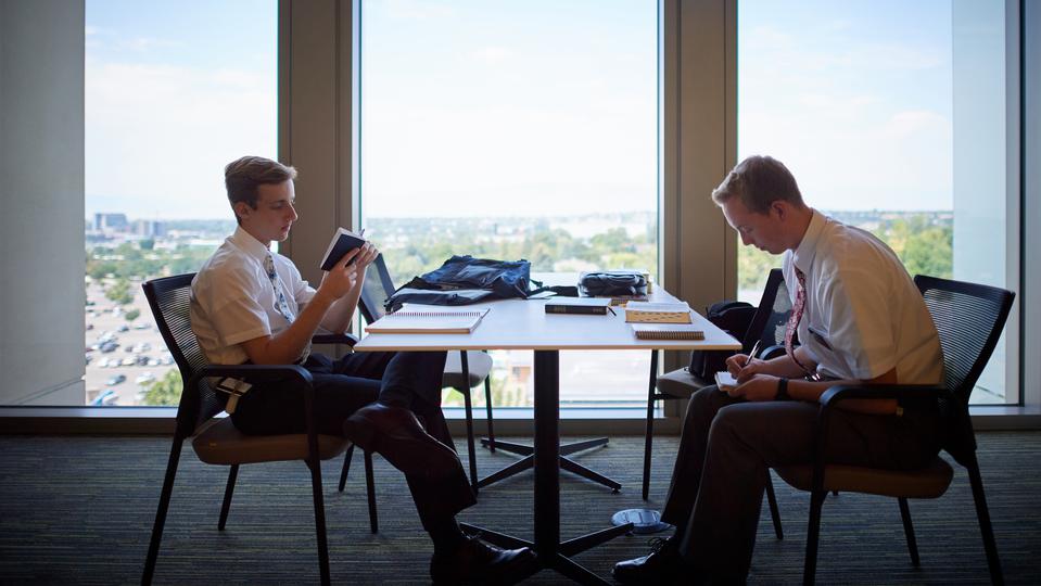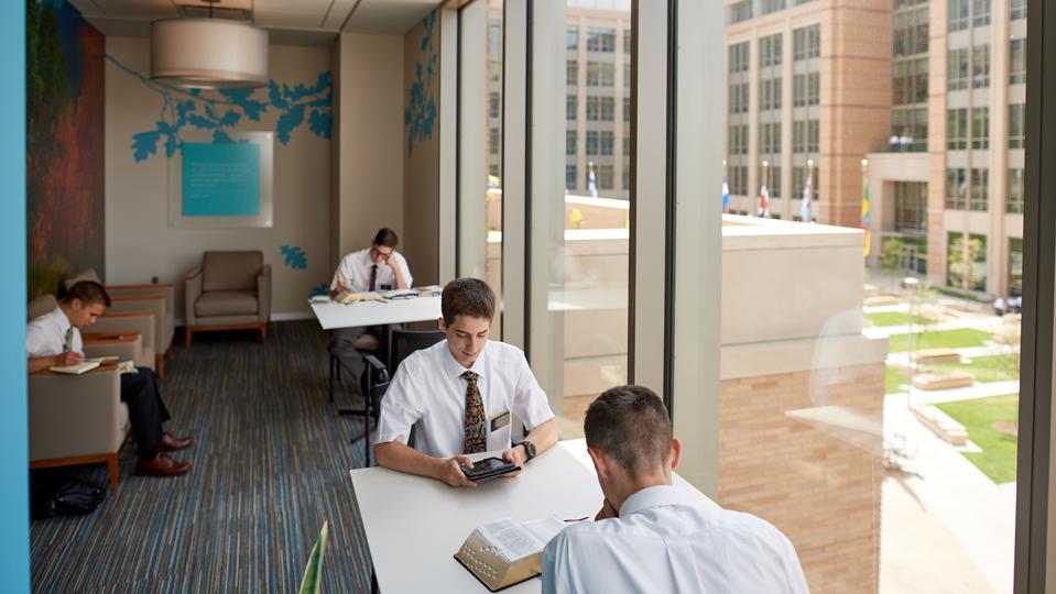 Elder Joshua Haws, a missionary from Gallup, New Mexico, who will be serving in the Adriatic South Mission, enjoys the quiet spaces in the new buildings. “I love going to those ponder areas. They’re set up so that I can go and be quiet in an area and spread out all of my scriptures and things, and really just focus on digging into the scriptures and feasting on the words of Christ and pondering and learning about the Savior and all He’s done, and on being a better missionary because of it,” he said.