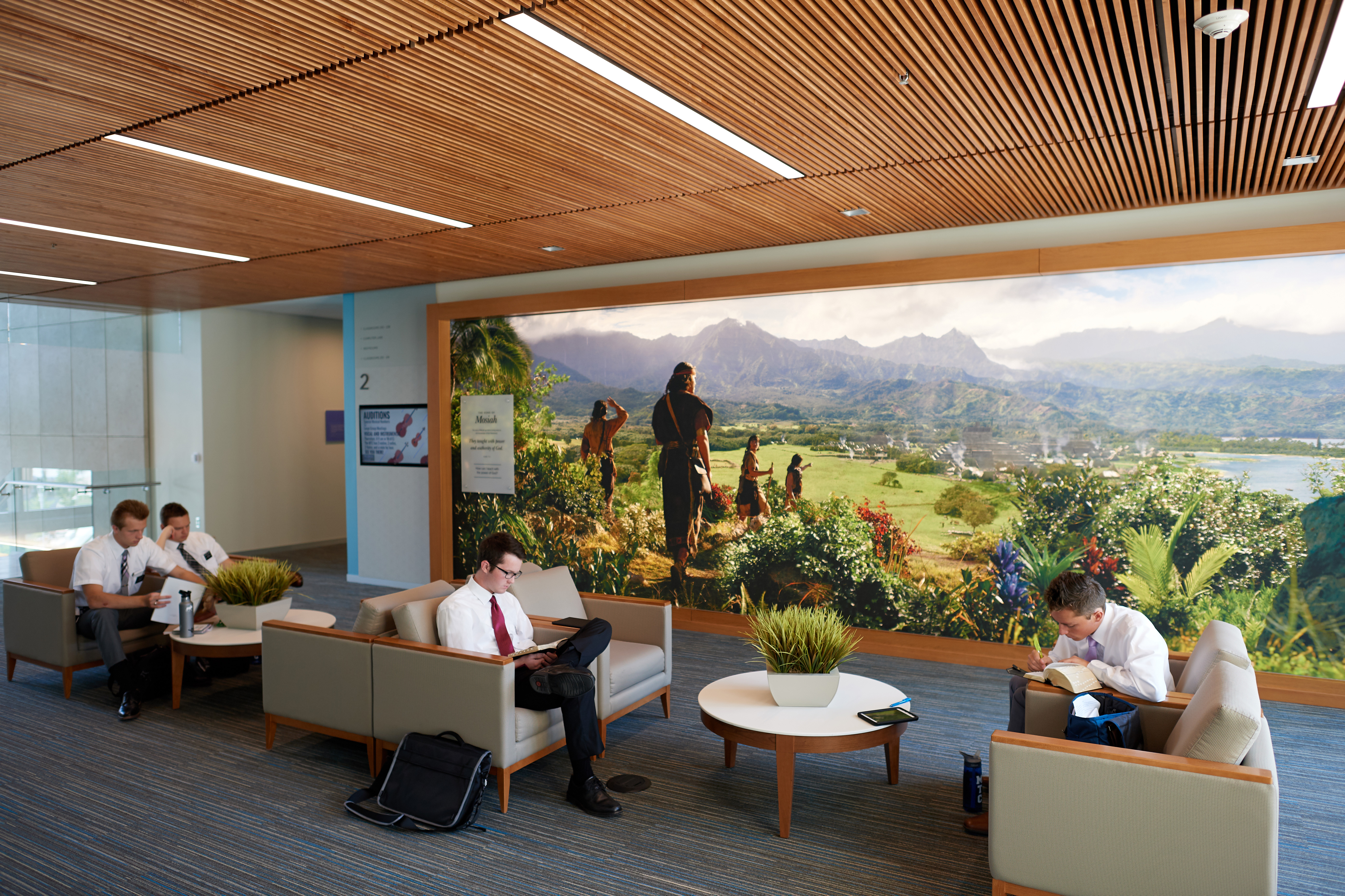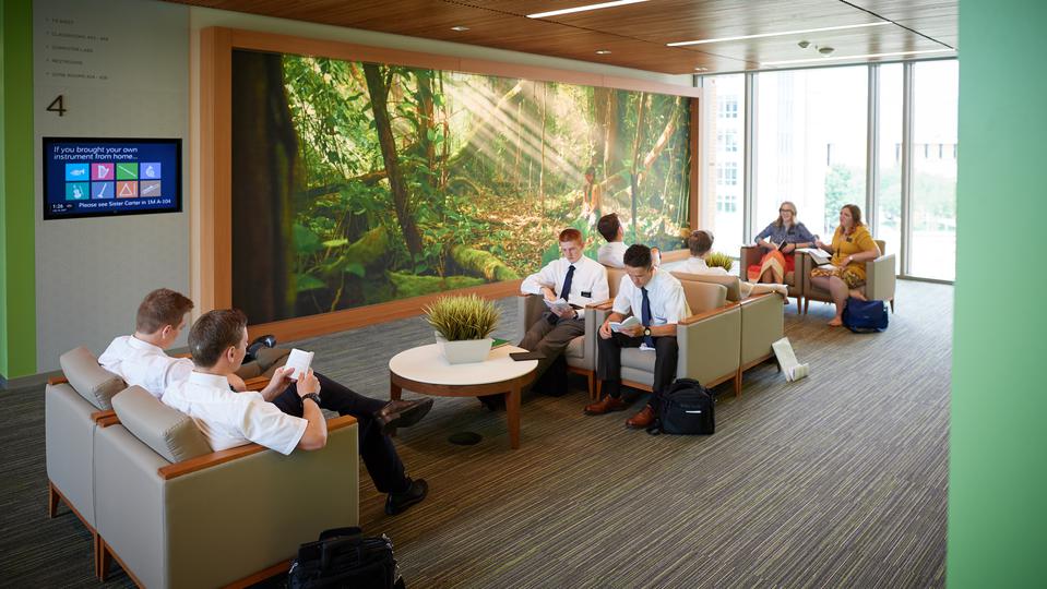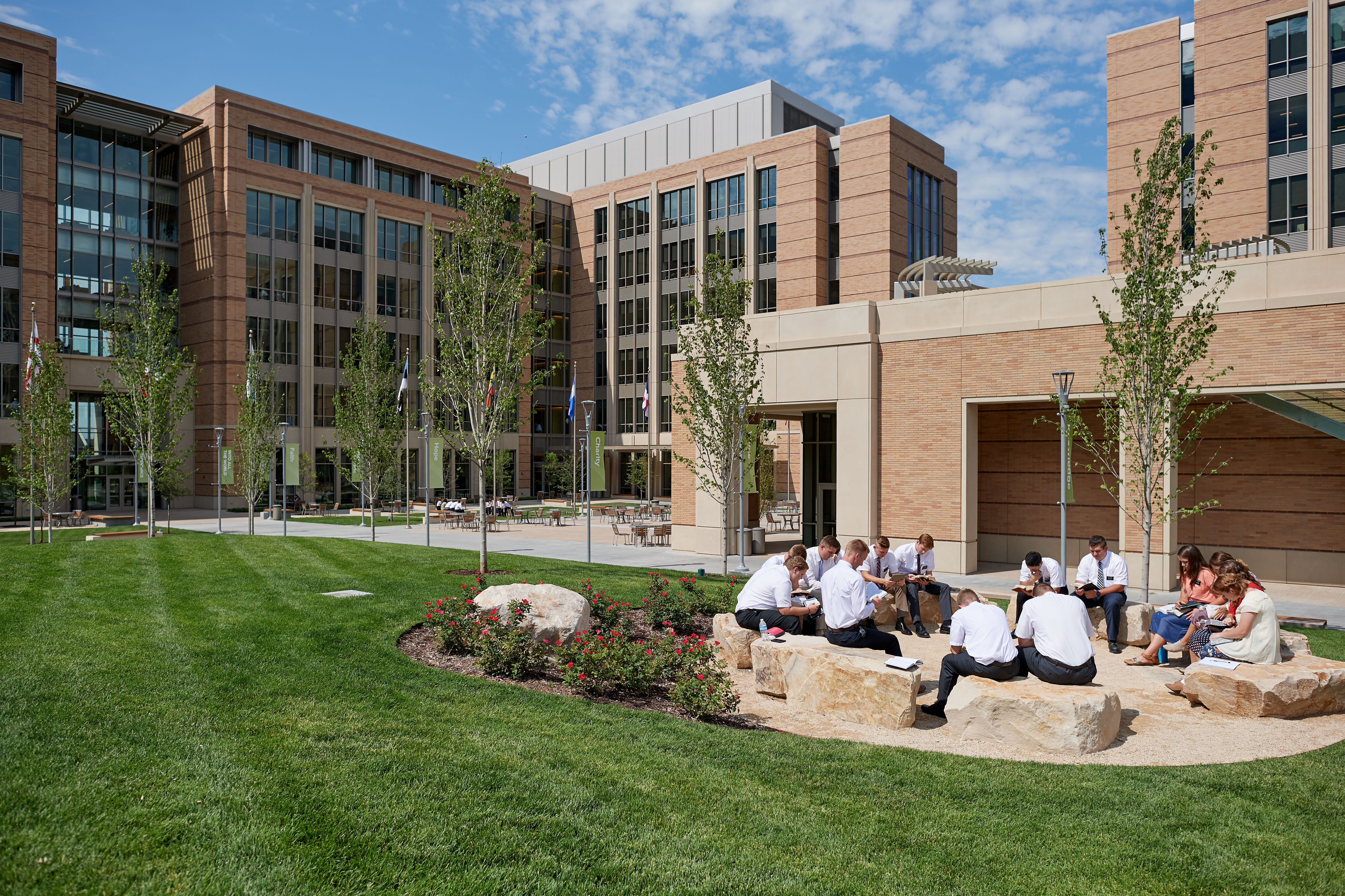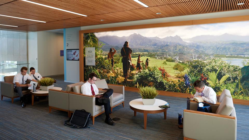 Large meeting rooms and indoor and outdoor study areas were incorporated in the design to enhance the missionary training experience.