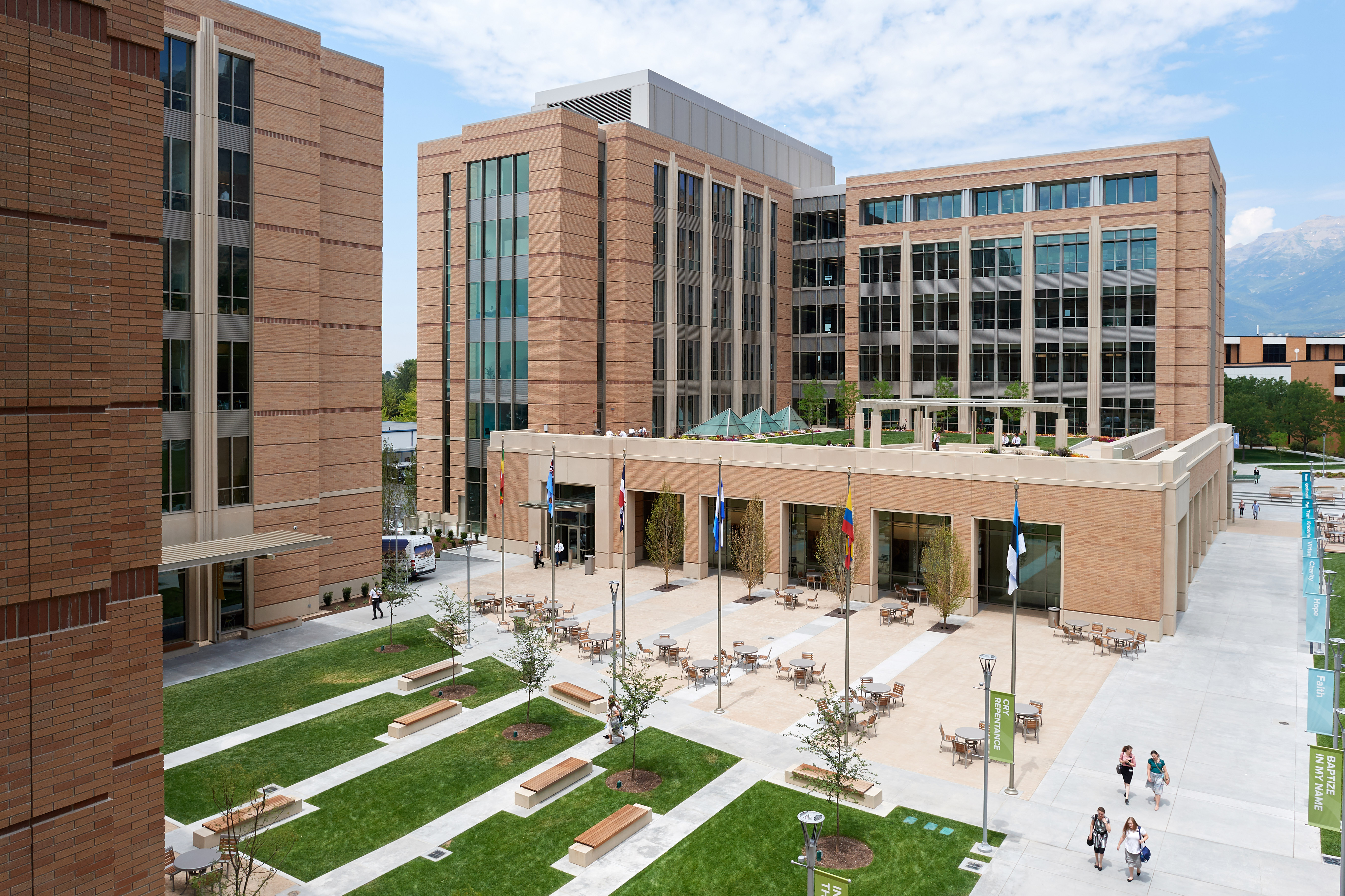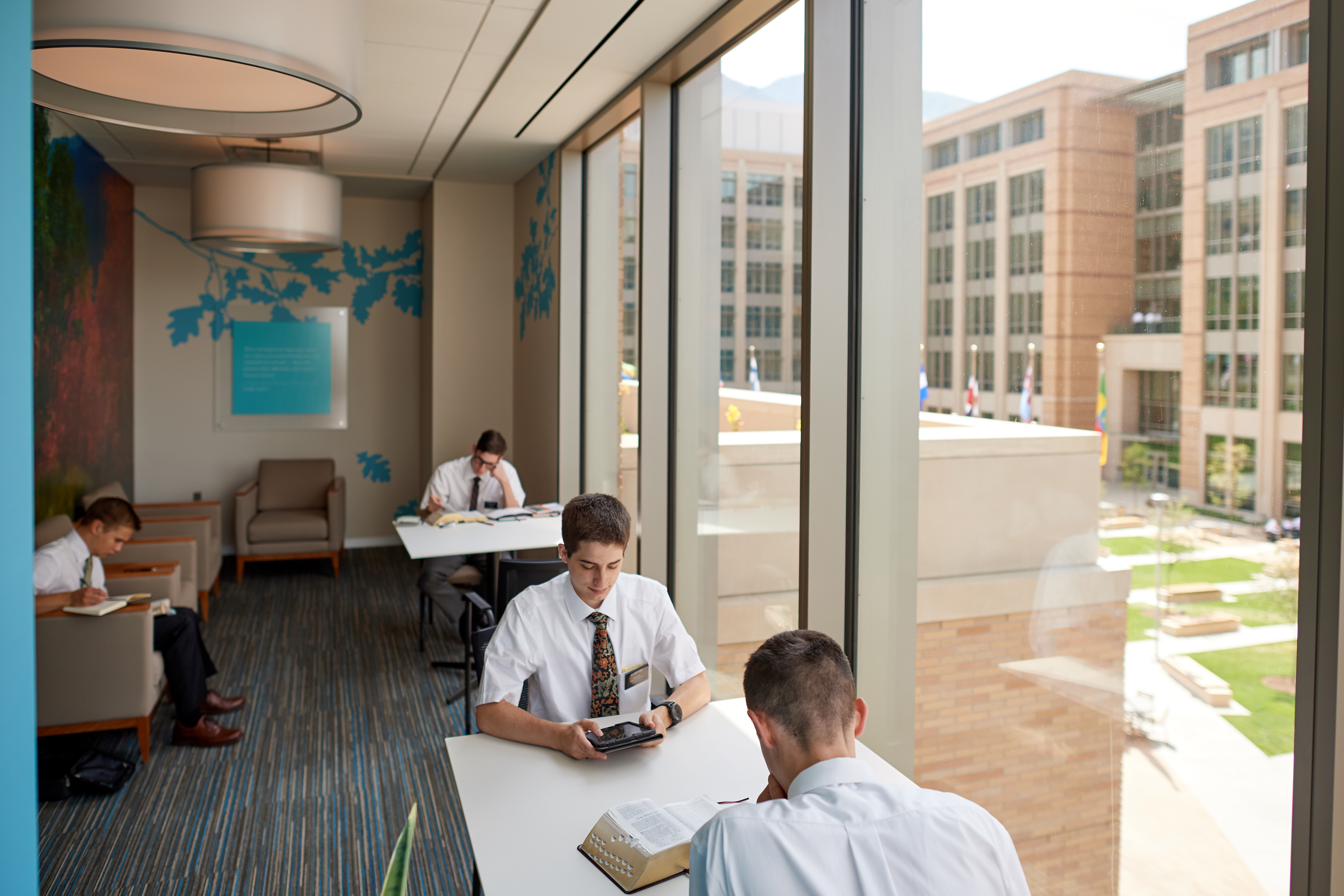 The new buildings feature extensive glass exteriors to maximize natural light and offer the missionaries views of the Wasatch Range of the Rocky Mountains.