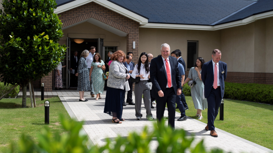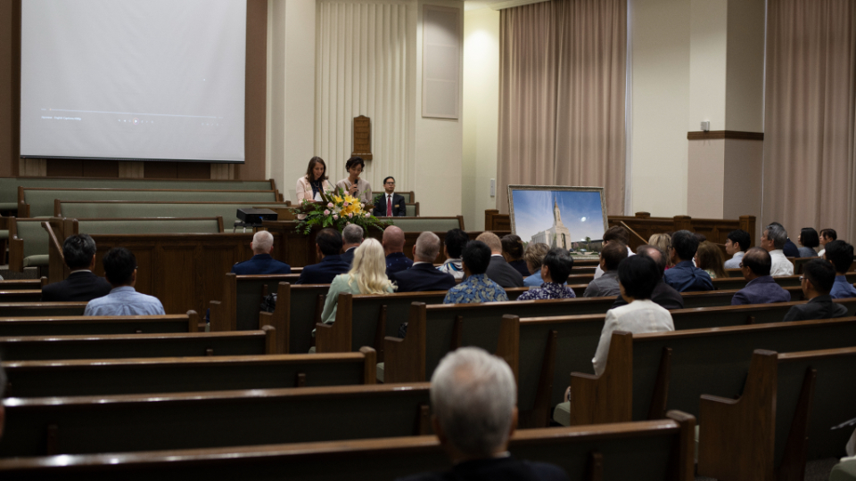 At a media day on Thursday, September 21, at a chapel next to the temple, Elder Erich W. Kopischke of the Seventy addressed invited guests and journalists before they walked through this new house of the Lord. Invited guests also toured the Okinawa Japan Temple on Friday, September 22.