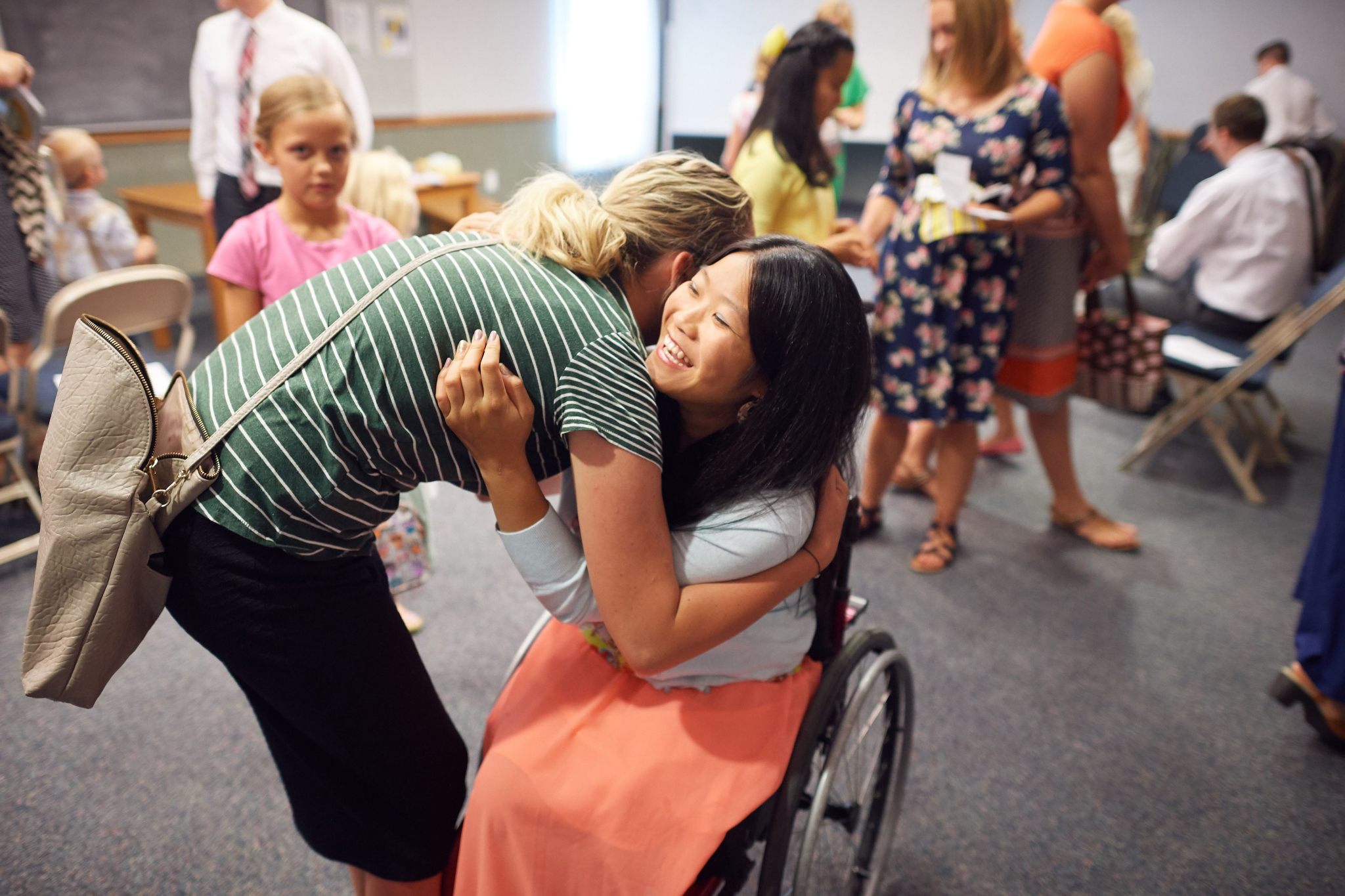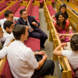 A member of the bishopric invites Young Women class presidencies to organize youth to minister by welcoming visitors and members as they enter the chapel. (See 11.3.4.2 and 29.2.1.3.)