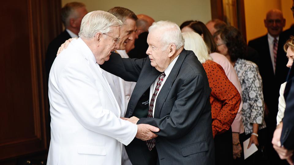 President Ballard shared how the 1999 temple dedication holds special memories for him, as it was the last time his wife, Barbara, accompanied him. She passed away in 2018. “I miss her counsel,” President Ballard said. Speaking to the men specifically in attendance, “We could not do it without our angel women. Do not miss an opportunity to look in your family's and loved one’s eyes and show love. Live each day together with love and gratitude.”