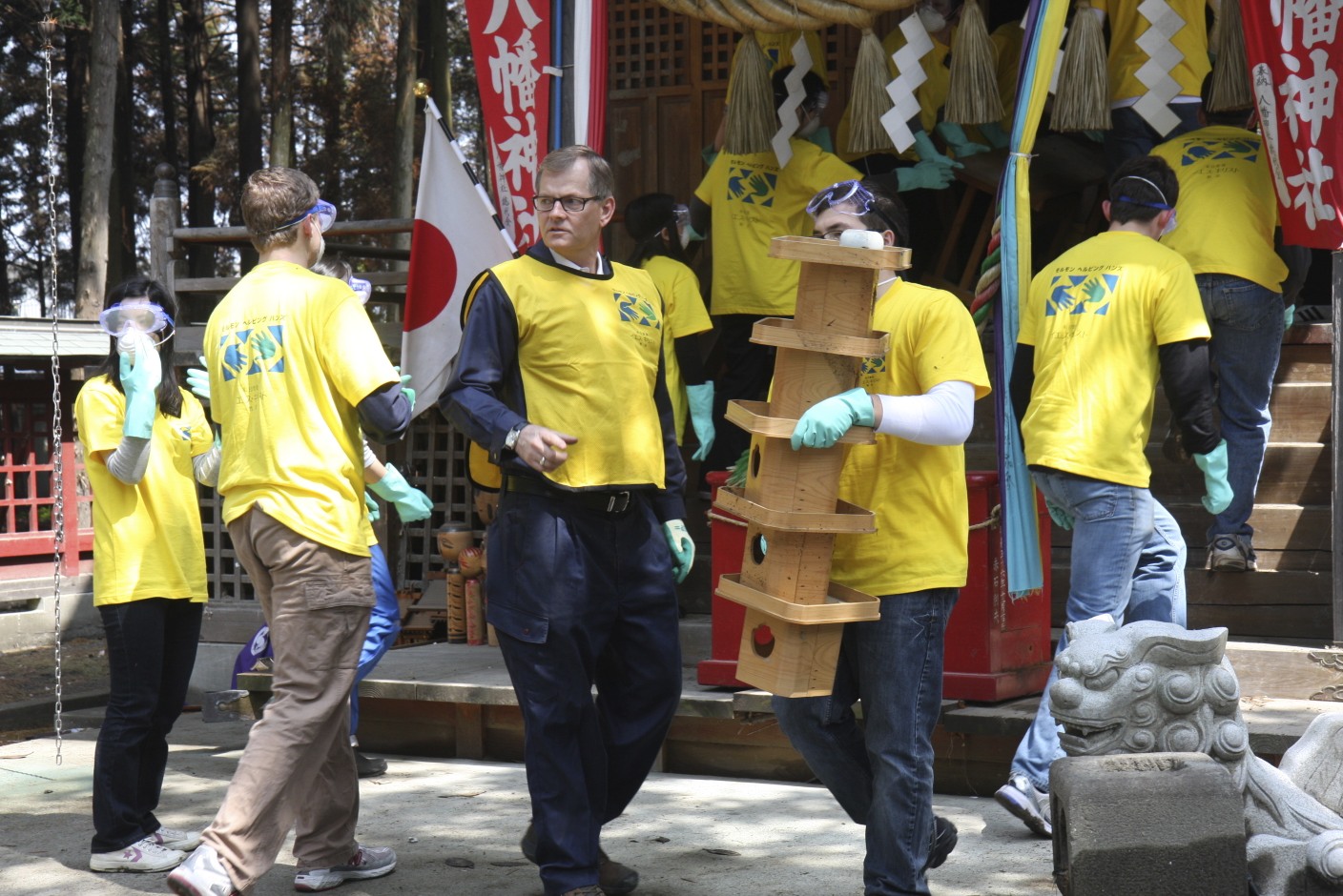 The tsunami flooded the Yawata Shrine, washed cars into the grounds and scattered and destroyed sacred artifacts. When Moriyasu Ito, a Meiji priest who studied at BYU, saw pictures of the service project in Tagajo, he was overwhelmed and contacted the Church, which has a long-standing relationship with Meiji.