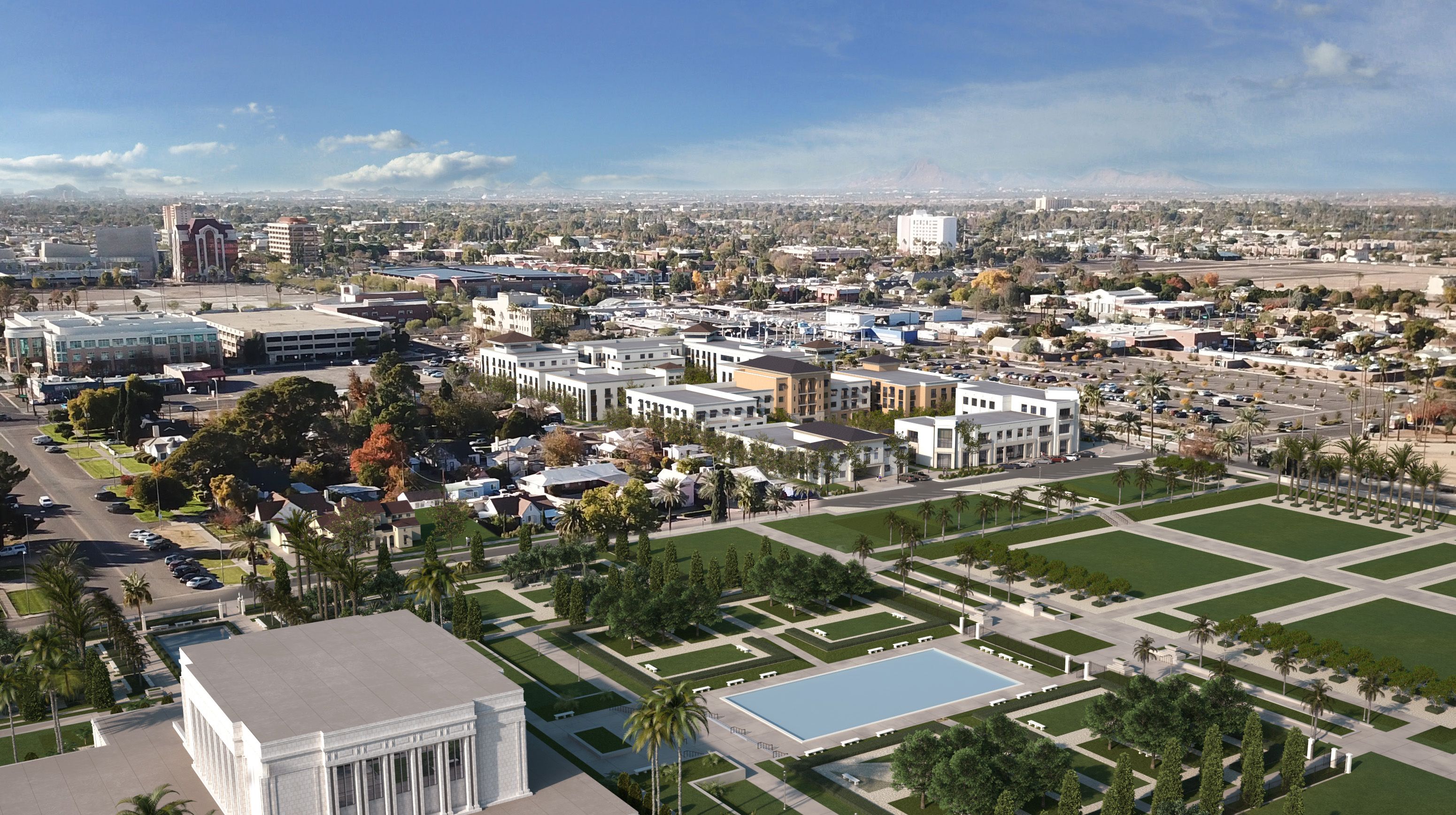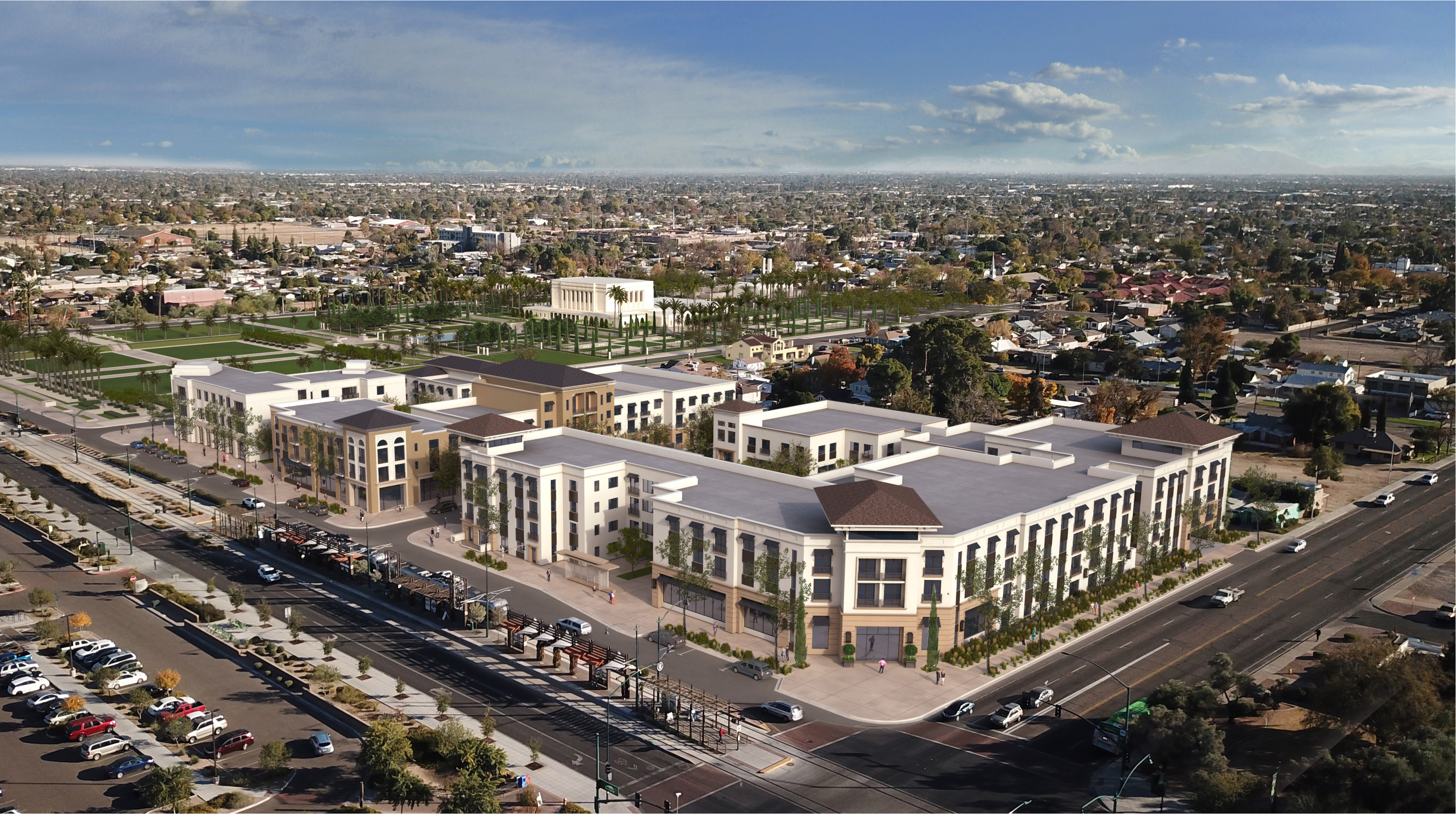 Plans have been announced to redevelop 4.5 acres of land along the Main Street light rail corridor in Mesa, Arizona, an area located just west of the Mesa Arizona Temple of The Church of Jesus Christ of Latter-day Saints. A new mixed-use community will replace vacant lots and buildings near the temple, which is currently closed for renovation.