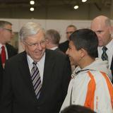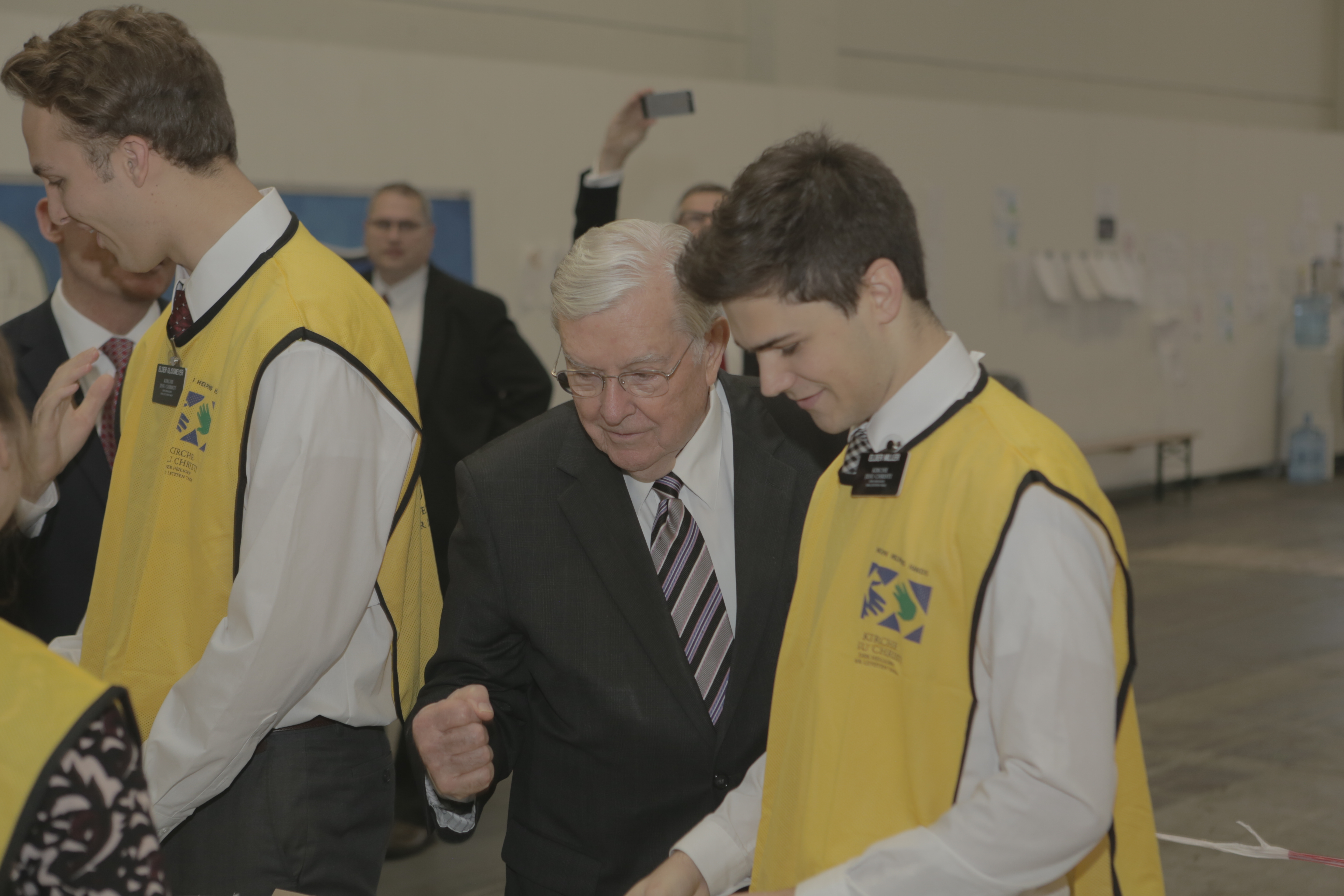 Mormon volunteers assembled hygiene kits at the shelter and passed out pallets of toys provided by the Church during Elder Ballard’s visit. “What a wonderful thing to see, … the children run in and have a toy,” said Elder Ballard. “They … would melt the heart of anyone.”
