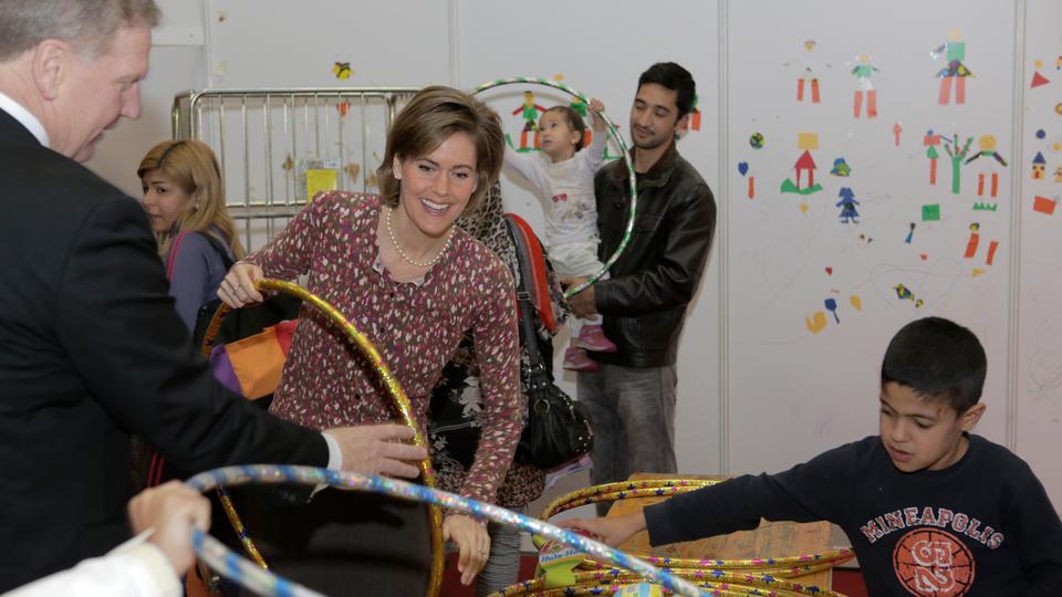 Baroness Marie-Catherine Heereman leads a charitable group that oversees several “villages” like the one in Berlin. An exhibition center converted into living spaces at the beginning of October now houses some 1,000 people who have endured visible hardship on their journey for protection and shelter.