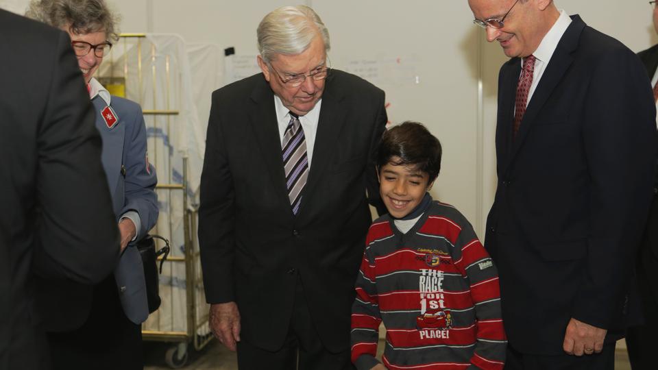 Elder M. Russell Ballard of the Quorum of the Twelve Apostles, the second-highest presiding body of the Church, just returned from visiting a refugee shelter in Berlin, Germany, and two sites on the Greek island of Lesbos. Elder Ballard was there to show his support and to gather firsthand impressions of the tremendous humanitarian effort for those who have lost everything fleeing civil conflict in their own countries.