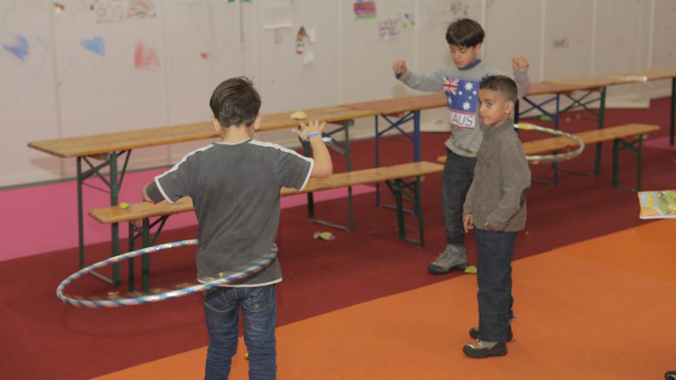 UNICEF creates child-friendly spaces in refugee shelters to help children experience an environment that will allow them to deal with trauma and distress. Refugee children on the transit area between Greece and Slovenia will be provided with winter caps to protect them from the cold.