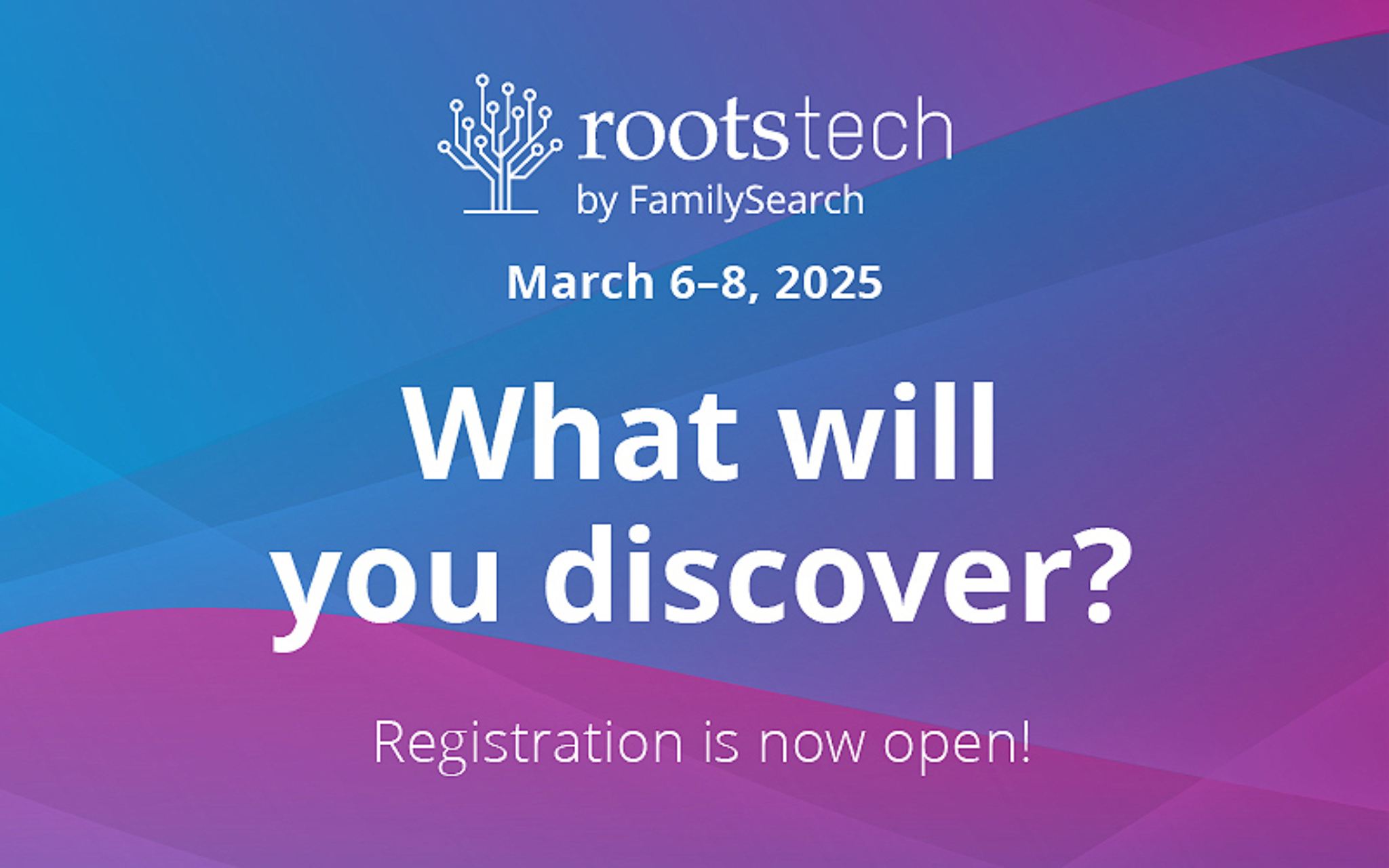 Registration for RootsTech 2025 is now open. The premier global family discovery is March 6–8, 2025, in Salt Lake City, Utah, and online at RootsTech.org.
