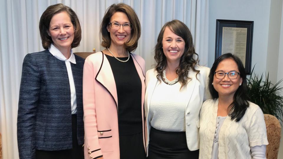The four new Relief Society board members are Melinda (Mindy) Booth, Memnet Lopez, Rebecca Mehr and Susan Porter.