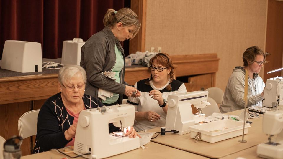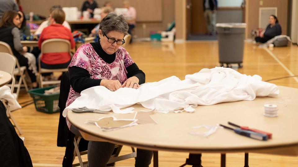 Several women cut and tied fleece blankets that were later donated to children at local hospitals, including Erlanger Hospital Others made and distributed meals to people in need.