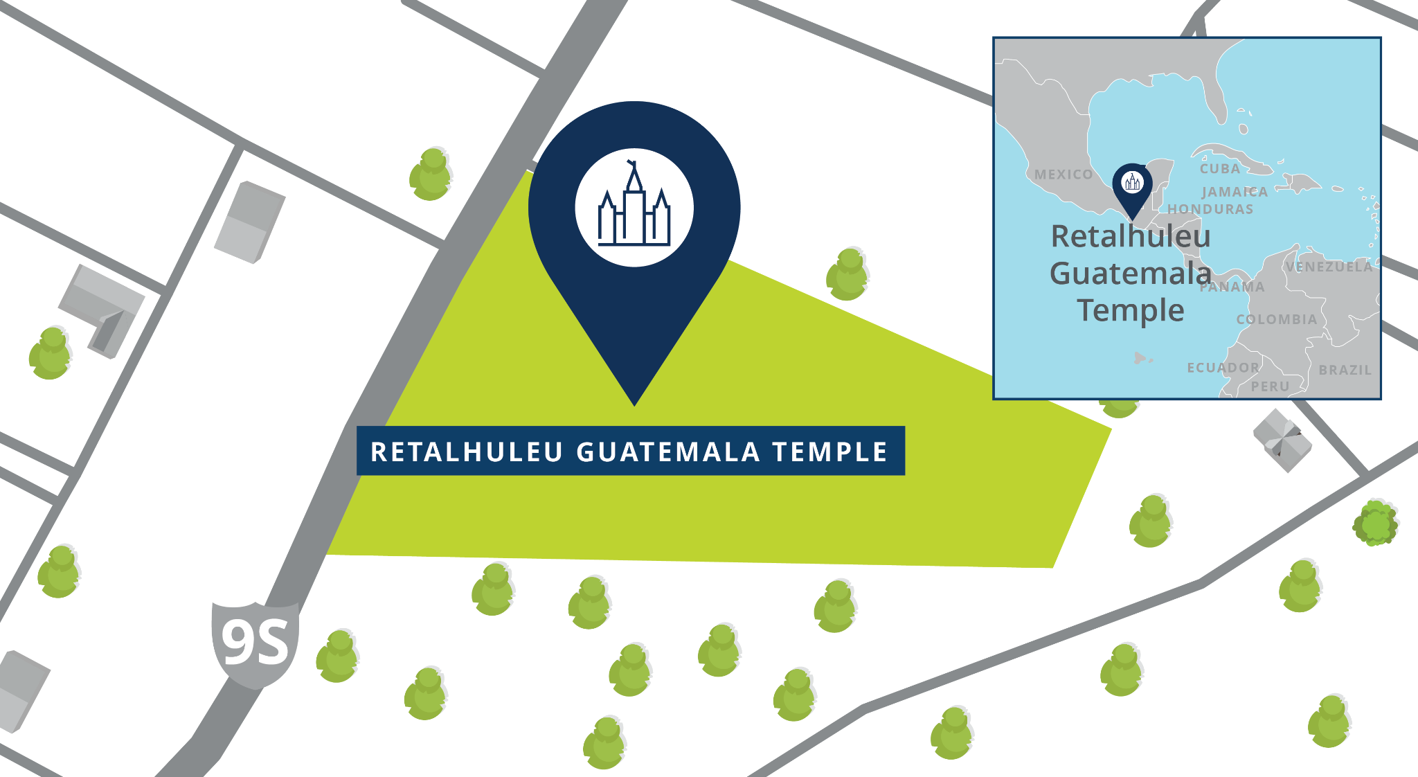 The temple will be built on a 5.51-acre site located at Km. 182.5 RN-9, Caserío Puca I, Municipio de San Sebastian, Retalhuleu, Guatemala. This will be the city’s first temple.