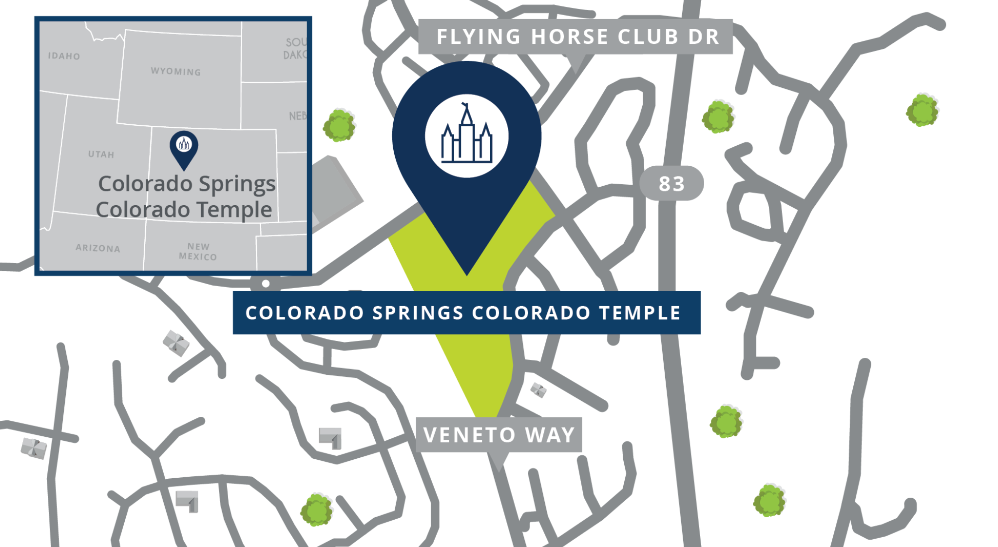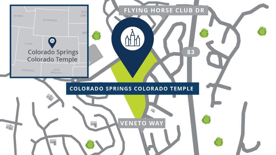 As previously announced, the Colorado Springs Colorado Temple will be built on an 18.6-acre site located at the South corner of Flying Horse Club Drive and Barossa Valley Road, Colorado Springs, Colorado. Plans call for a single-story temple of approximately 45,000 square feet, a meetinghouse and an accompanying utility building. This will be the city’s first temple.
