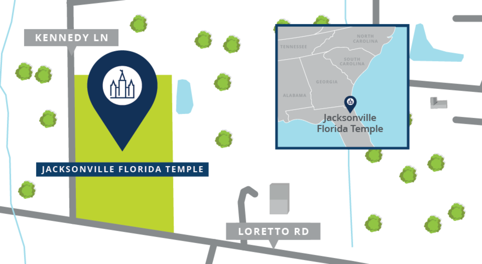 Plans call for a single-story temple of approximately 29,000 square feet to be constructed on a 6.6-acre site located at 3323 Loretto Road, Jacksonville, Florida.