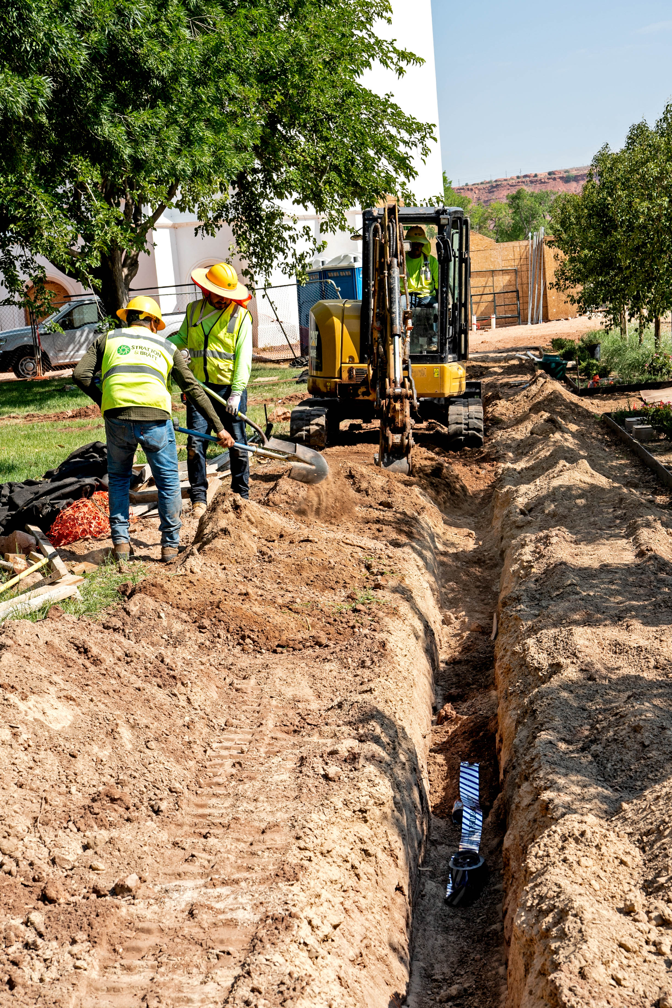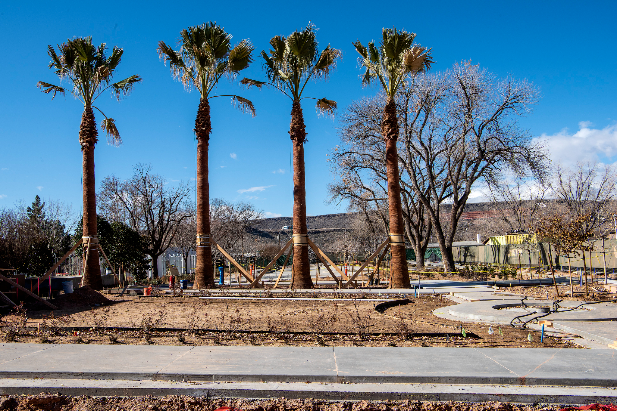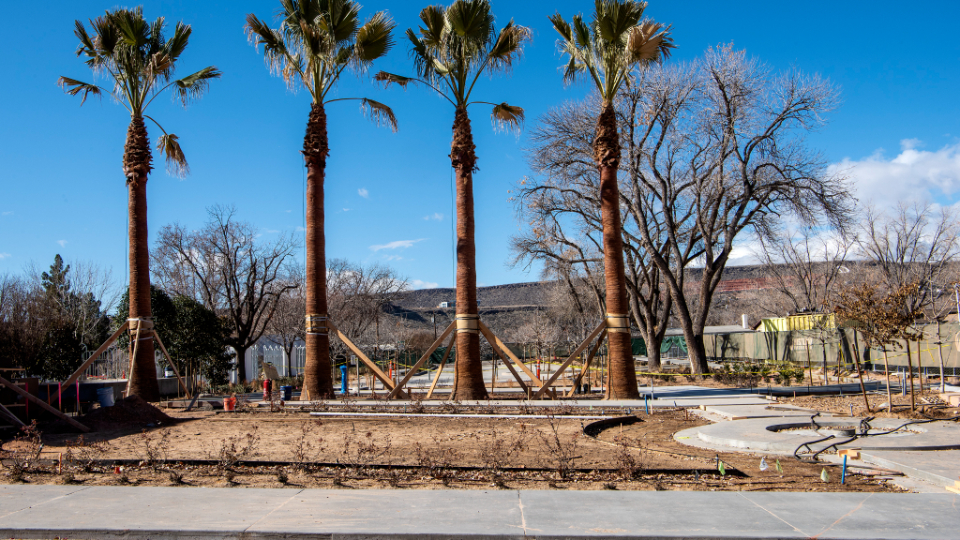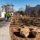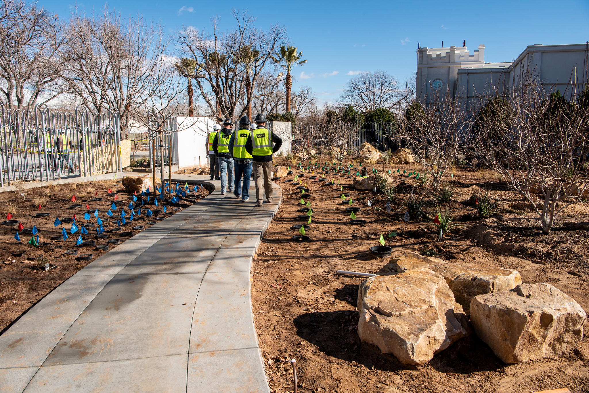 The walkways, planters and landscaping are nearing completion. Drought tolerant shrubbery and trees are ready for an early spring planting to help ensure they are well rooted to survive the intense heat of summer. In addition, a sophisticated smart weather irrigation system is being installed that will know the optimum time to water the vegetation.