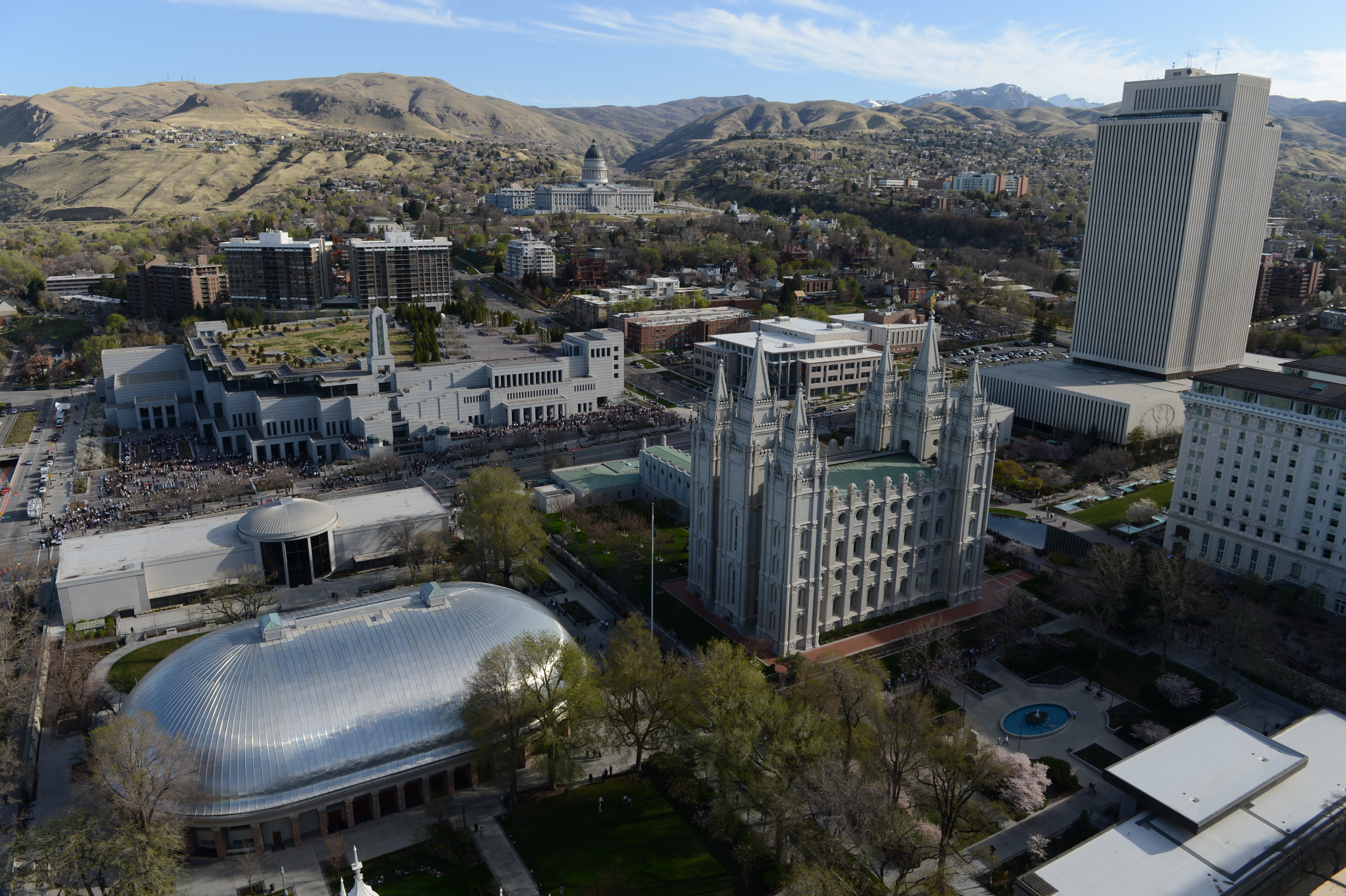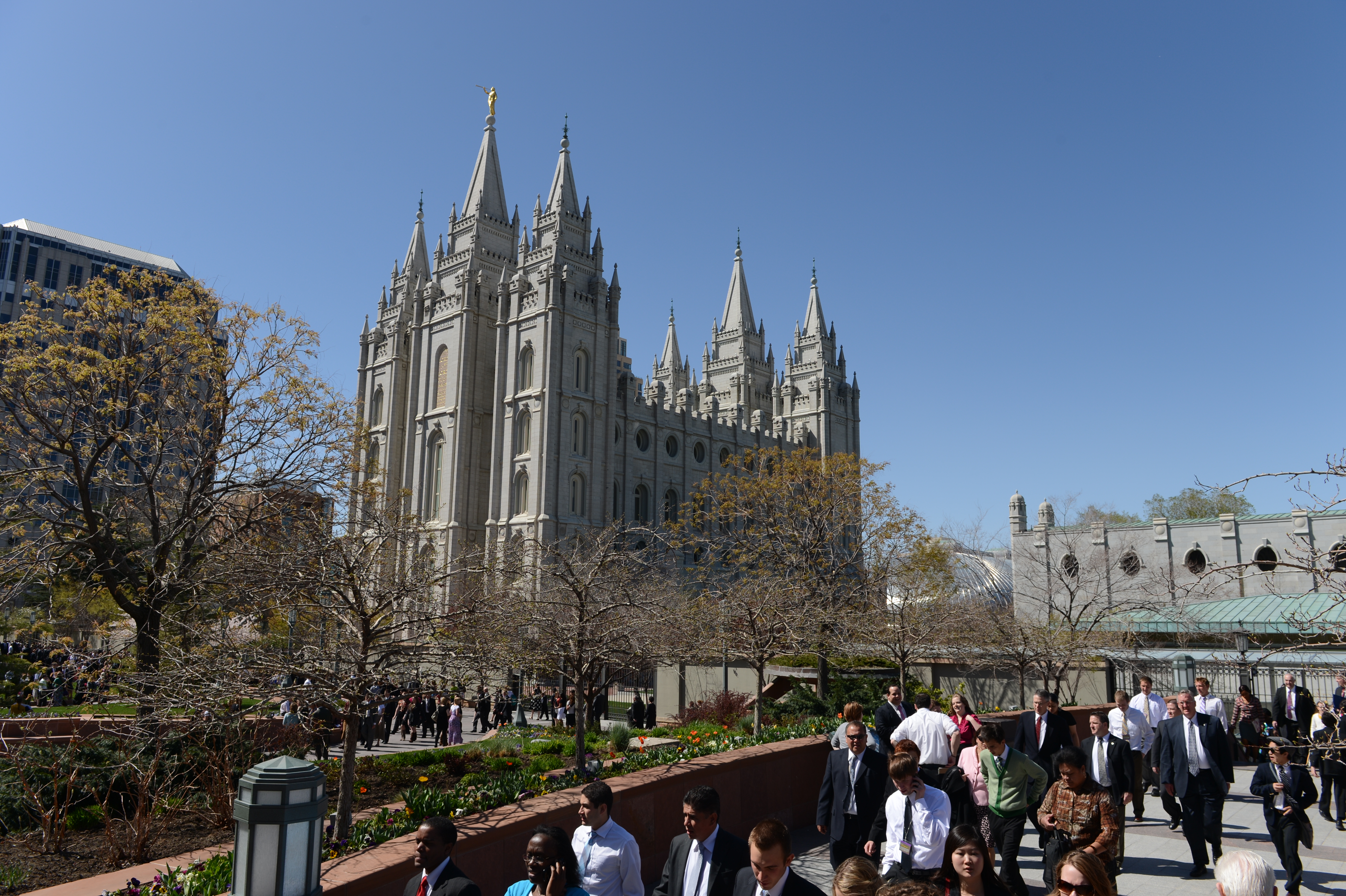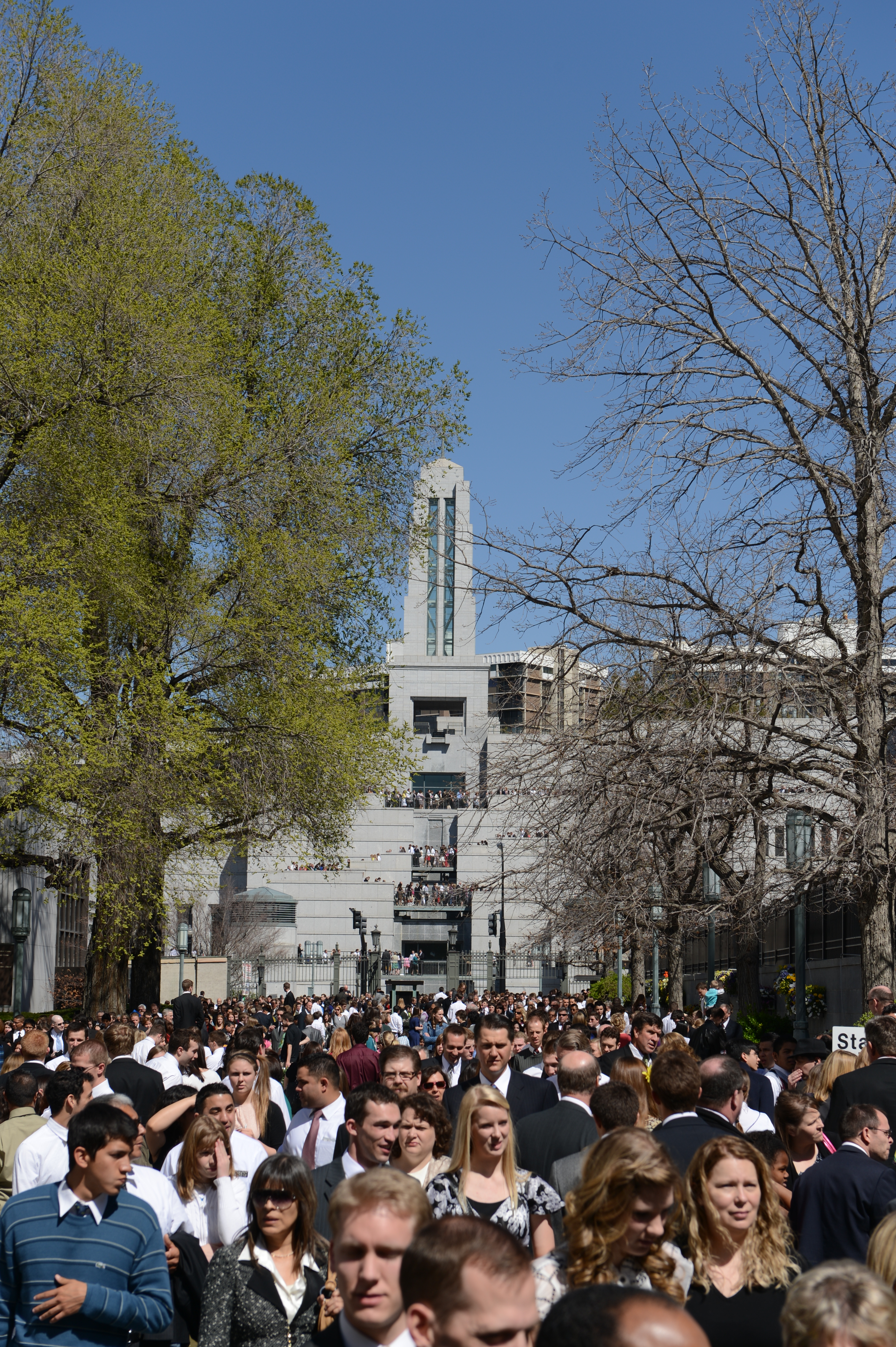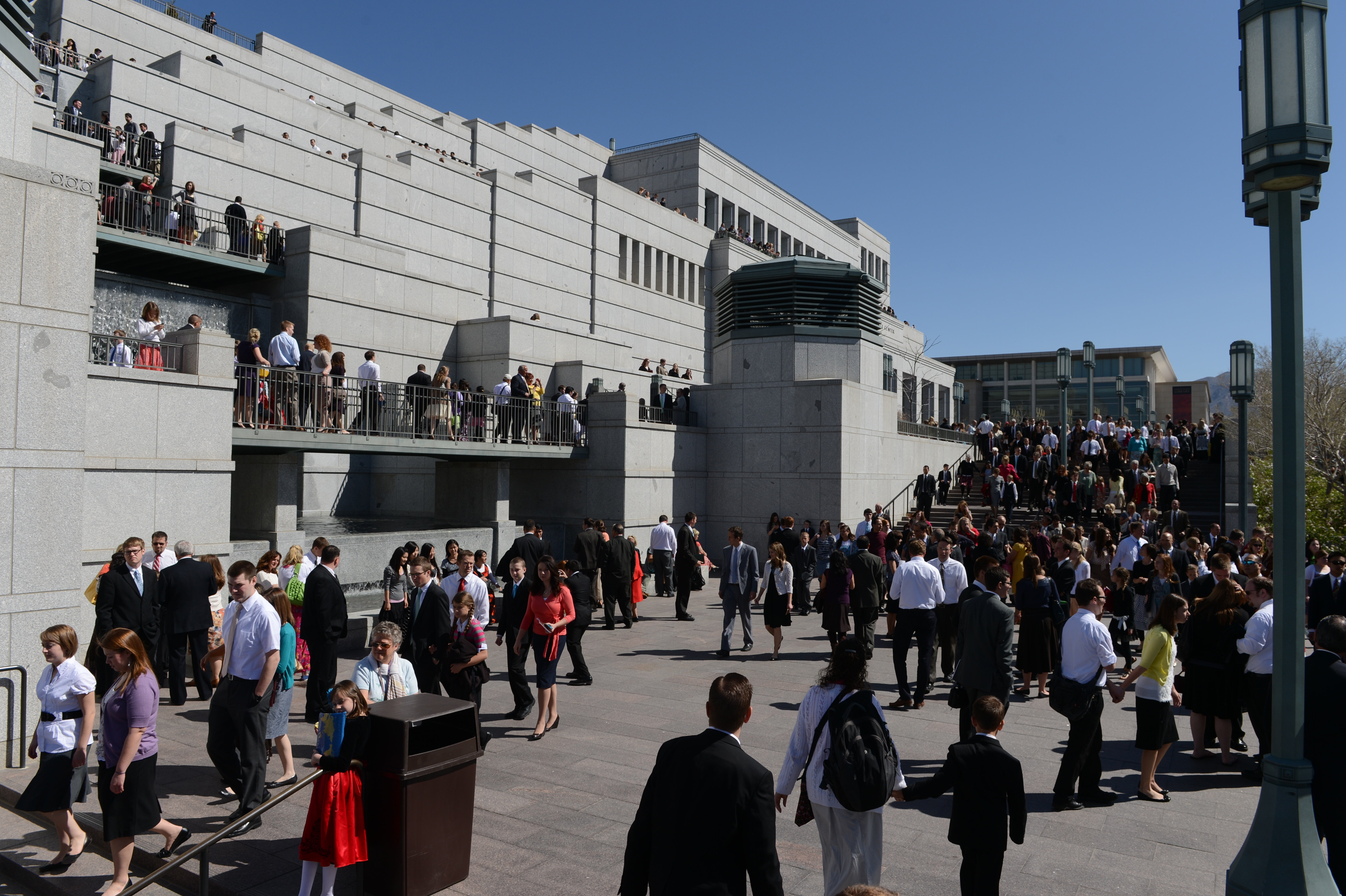 General conferences of The Church of Jesus Christ of Latter-day Saints take place every six months, originating in the 21,000-seat Conference Center in Salt Lake City and reaching a global audience estimated to be in the millions. The proceedings are available in 94 languages via television, radio, satellite and Internet broadcasts. Five sessions of the conference will be held Saturday and Sunday, 31 March-1 April 2012, in the Conference Center in Salt Lake City, Utah.