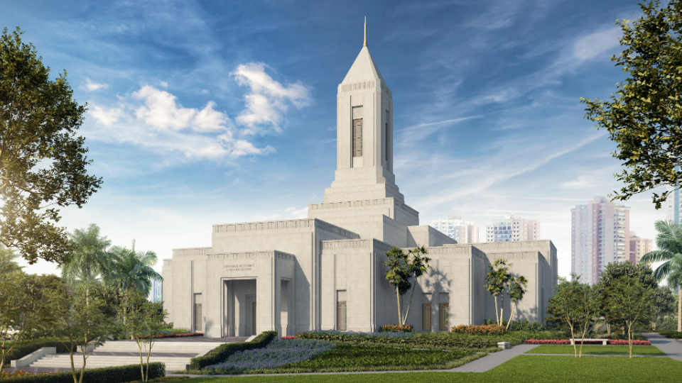 An artist’s rendering of the Maceió Brazil Temple has been released. President Russell M. Nelson announced the temple in April 2022. The site location was released in March 2023.
