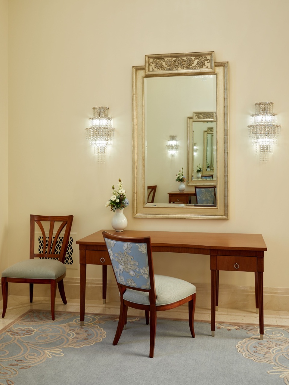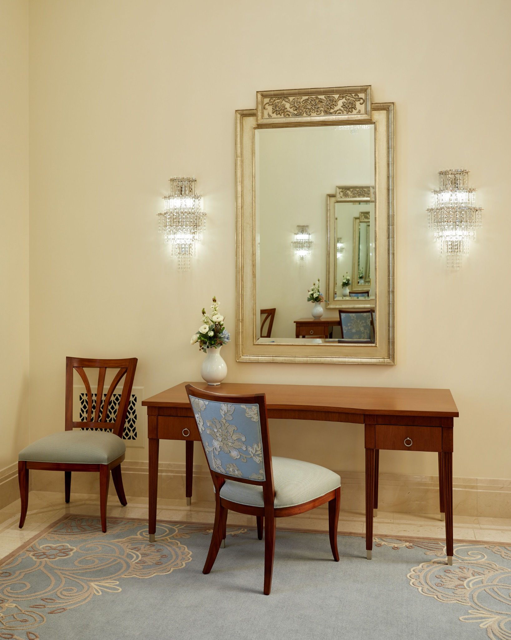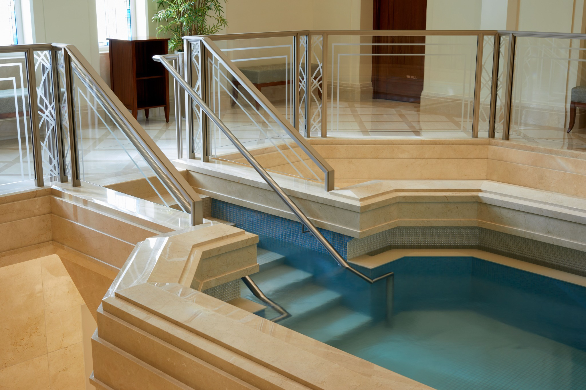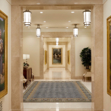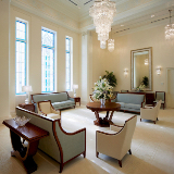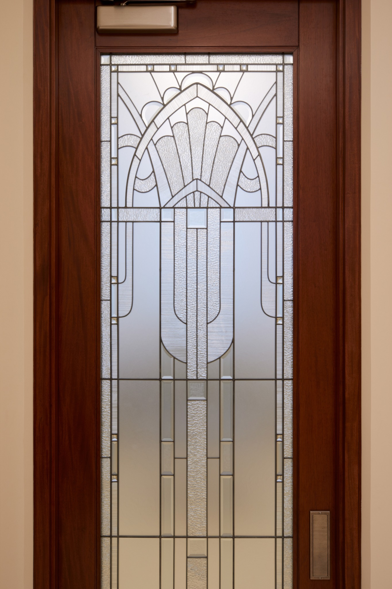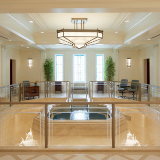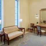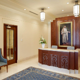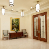 Design elements are finished with clean lines that evoke and reinforce a planar feel. Inside the temple, chandeliers, stylized railings, expertly crafted millwork and exquisite art glass invoke an art deco feel.