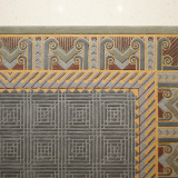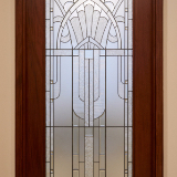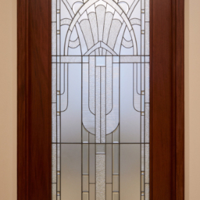 The proximity of Rio de Janeiro to the ocean influenced the colors selected for the art glass, with shades of blue, aqua and purple offset with soft gold. The patterns consist of geometric art deco fountain motifs.