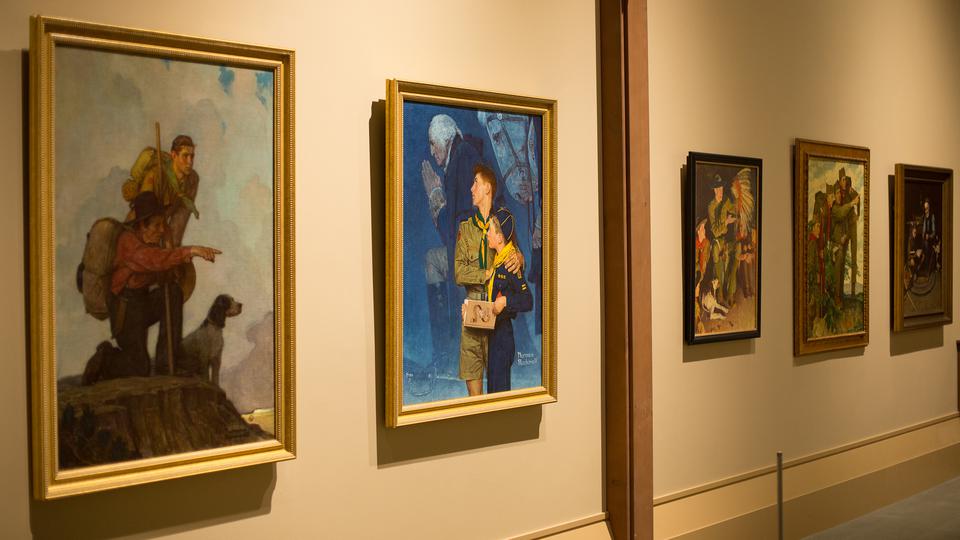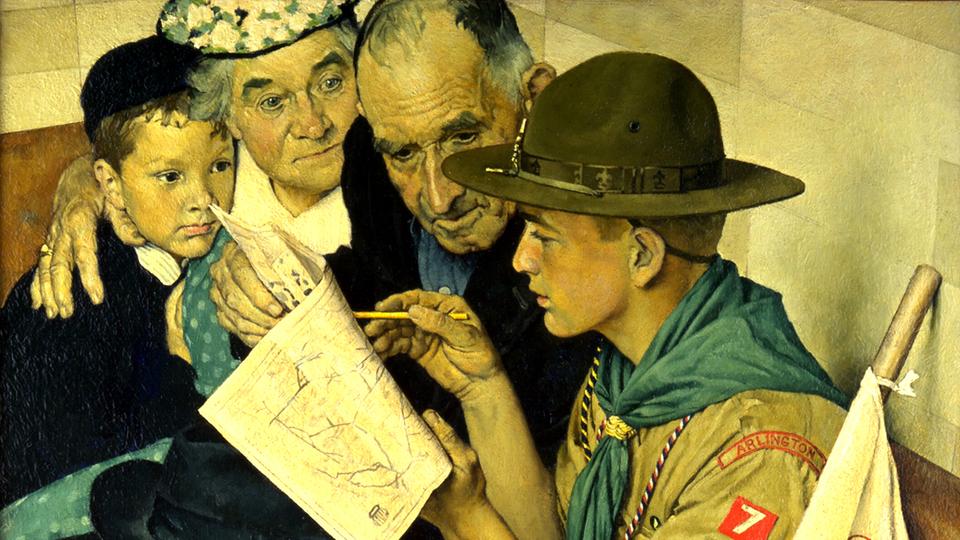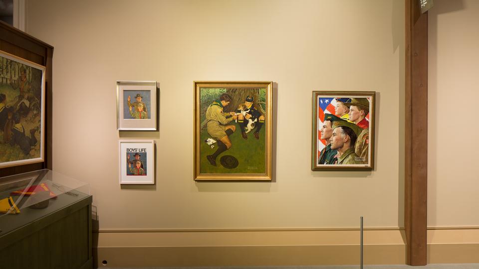 Though Rockwell may be best known for his Saturday Evening Post cover art, the artist also created hundreds of illustrations related to Scouting. Most of the paintings in the exhibit were created for the Brown & Bigelow Scouting calendar, popular in the U.S. in the 1930s, '40s and '50s. From 1925 to 1976, Rockwell created over 50 idyllic paintings of Boy Scouts for the calendar, which were then featured on the cover of Boys’ Life, the monthly magazine of the Boy Scouts of America (BSA), each February.