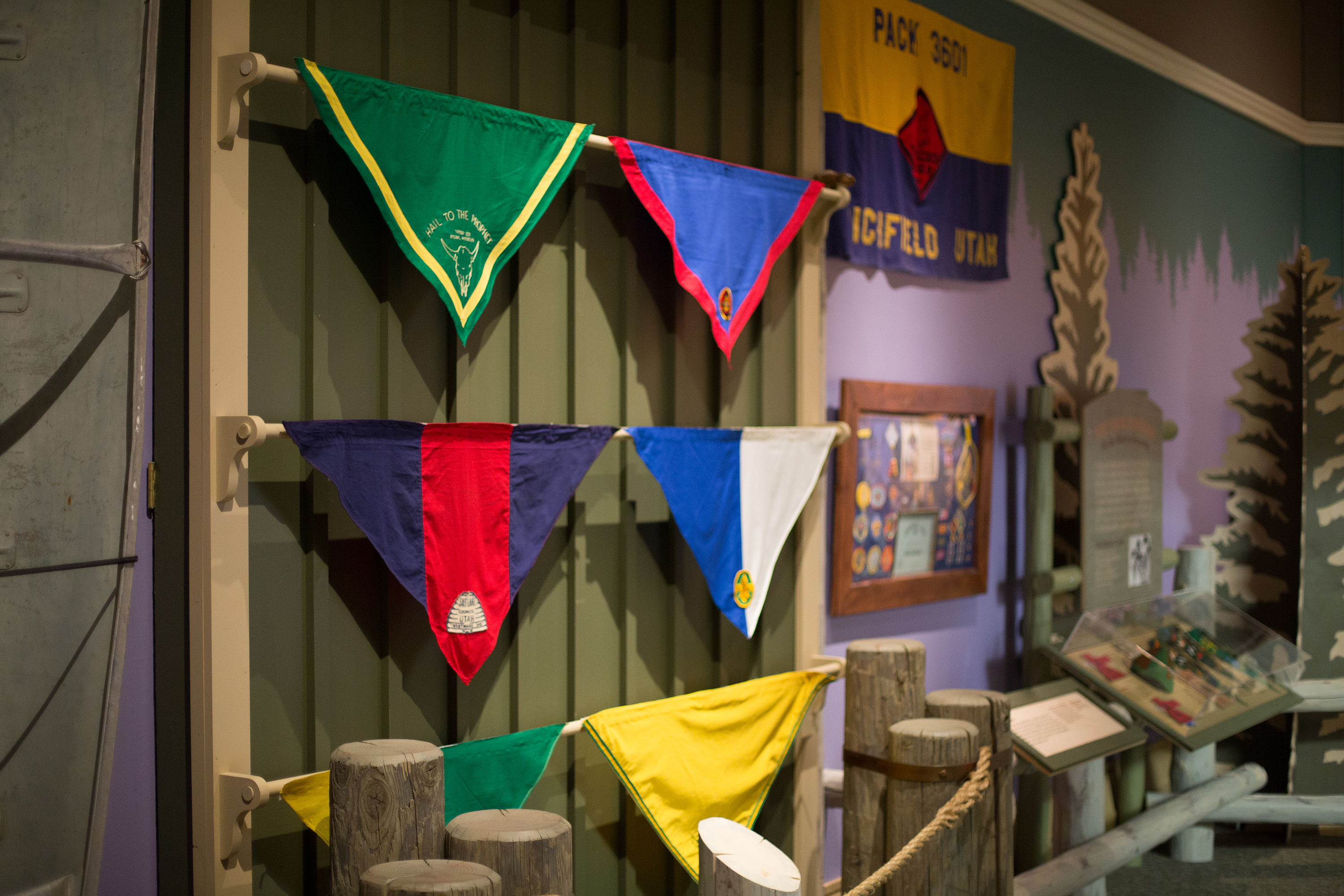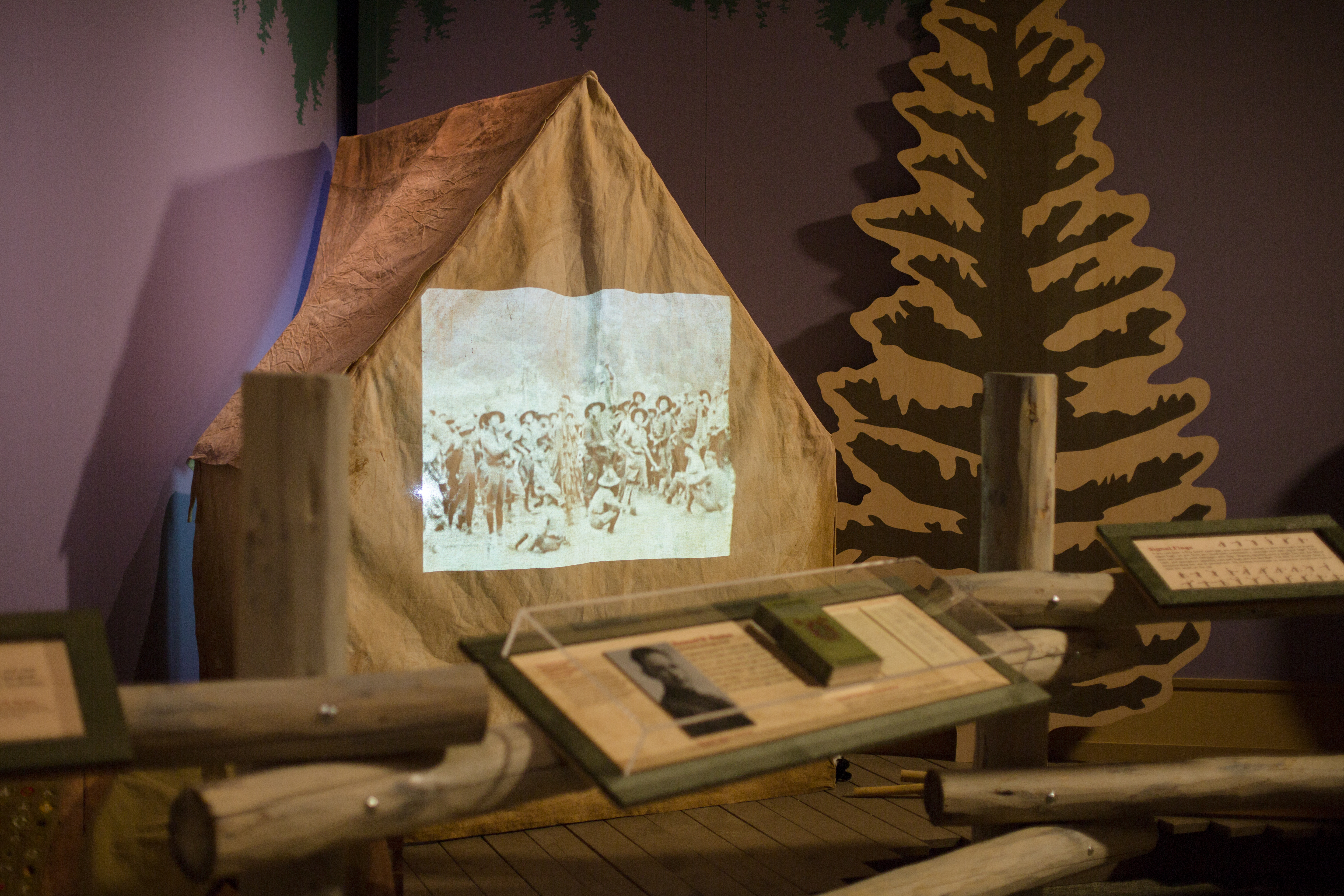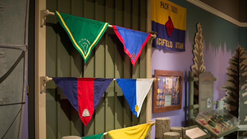 The Church History Museum has also created an accompanying exhibit about the history of Scouting and the Church. With young patrons in mind, curators designed the exhibit to evoke a Scout camp, “Camp Good Turn,” and Scouts who attend can use the exhibit to fulfill some merit badge requirements. The exhibit includes hands-on stations that highlight original Boy Scout activities from the early 20th century, including tracking games, semaphore flags and knot tying.