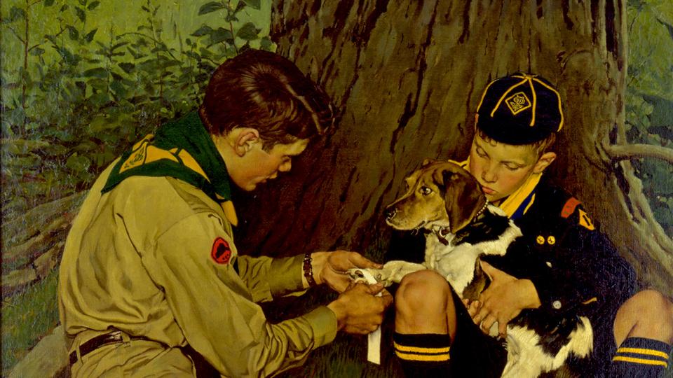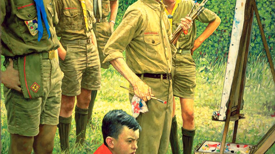 Rockwell worked closely with BSA leadership to ensure his paintings embodied the ideal Boy Scout and the virtues of Scouting. As Rockwell told Scouting magazine in 1978, “I paint life as I would like it to be.” In Rockwell’s paintings, the idealized subjects appear, just as the Scout Law describes, trustworthy, loyal, helpful, friendly, courteous, kind and obedient.