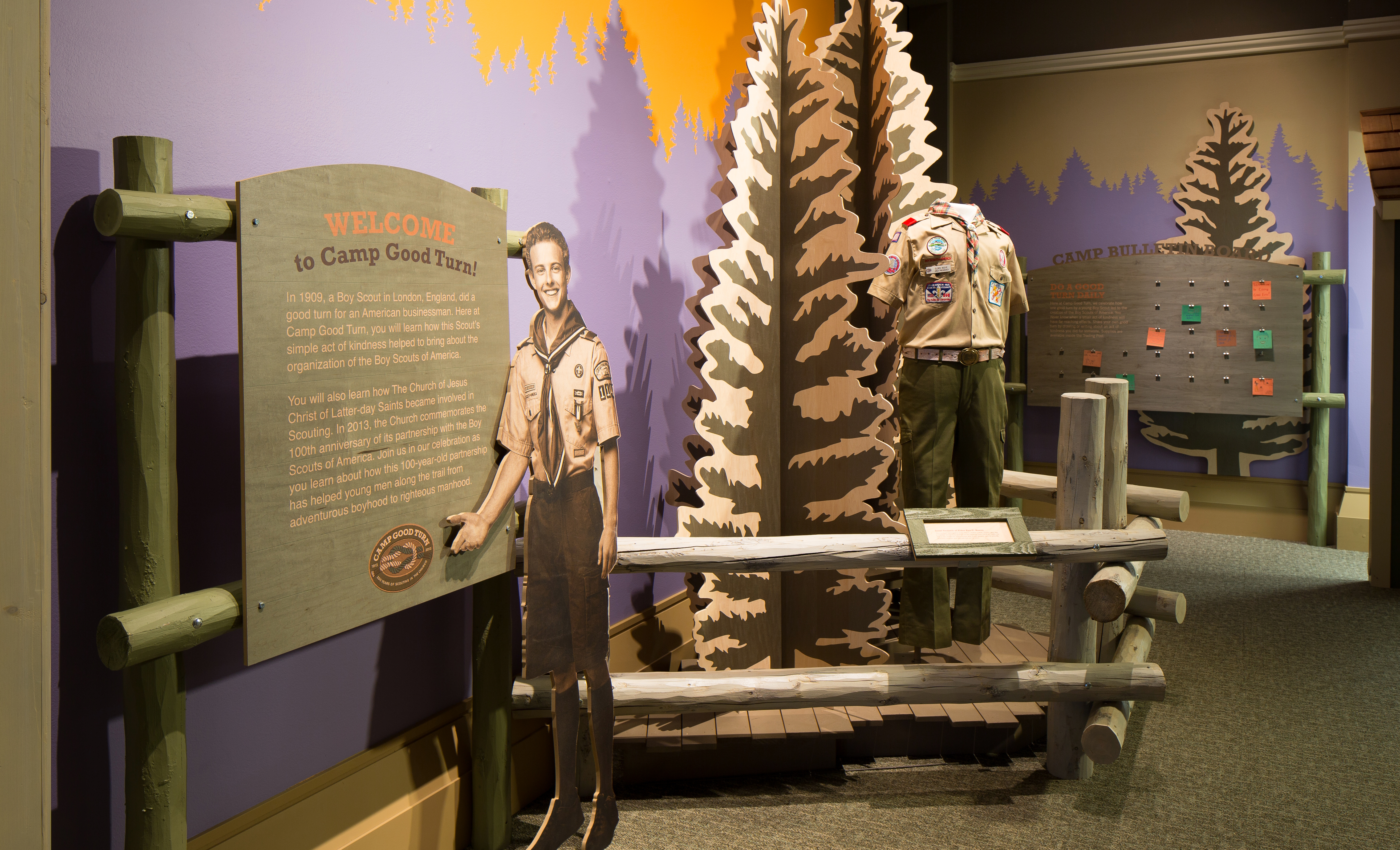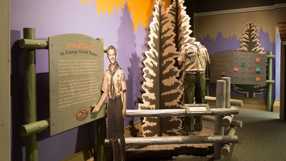 “It’s created for boys to come and learn a little bit about the basic history of Scouting and the Church,” says Ray Halls, curator at the Church History Museum. “It’s called ‘Camp Good Turn,’ playing off the idea of Scouts doing a good turn daily.”