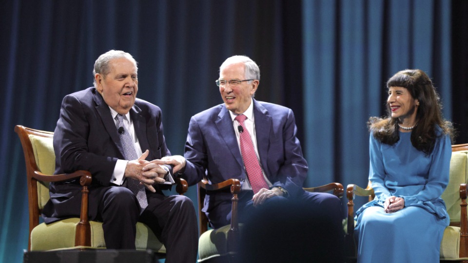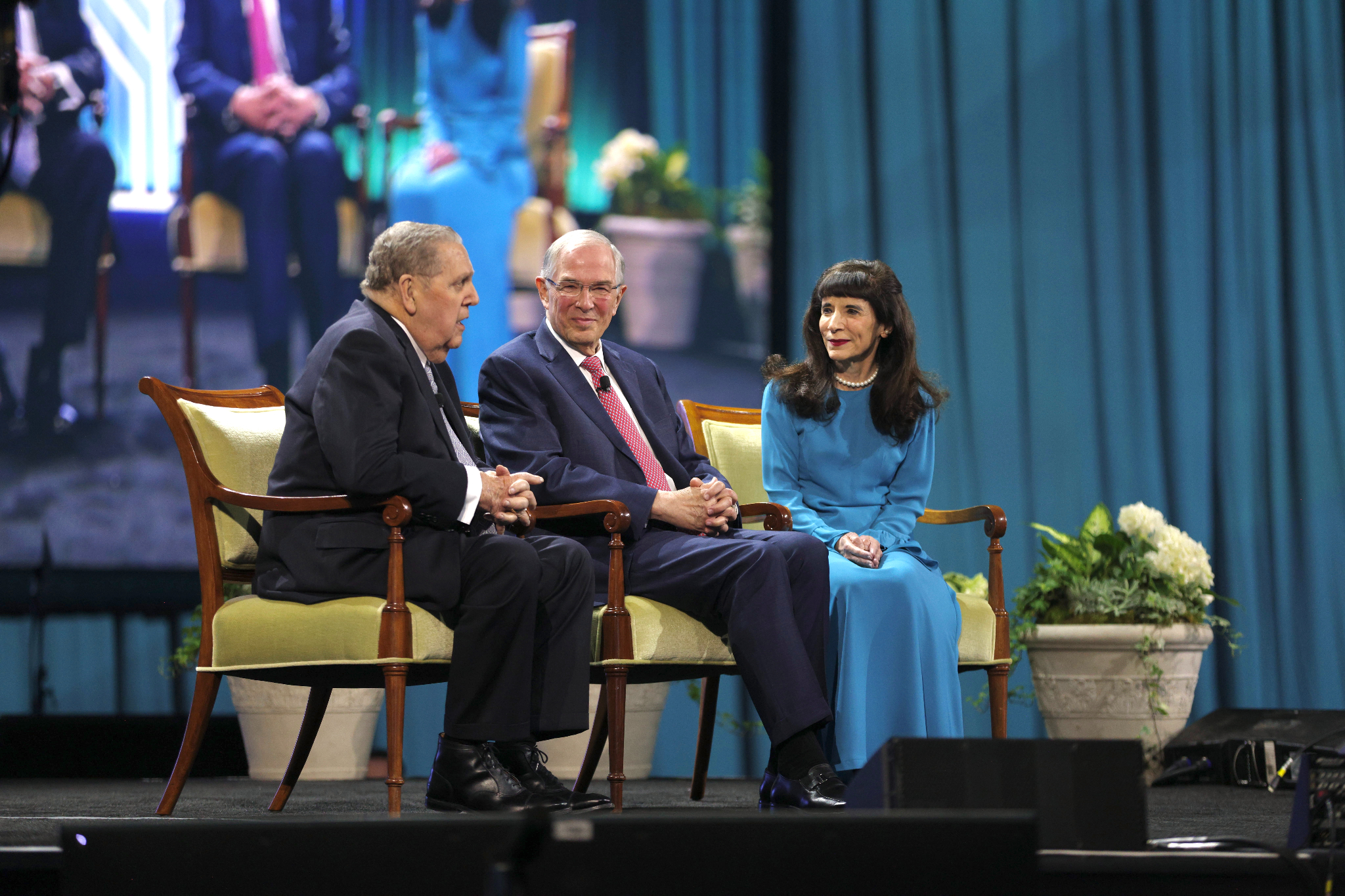 “May God bless all of you — but I especially bless the women,” President Holland said. “When God finished the work of creation and had gone through every step, from the darkness and the light and the water and the land and the beast and the fowl of the air, and he had Adam ready to serve, He still was not complete. The great, final, culminating, crowning work of God’s creation was a woman.”
