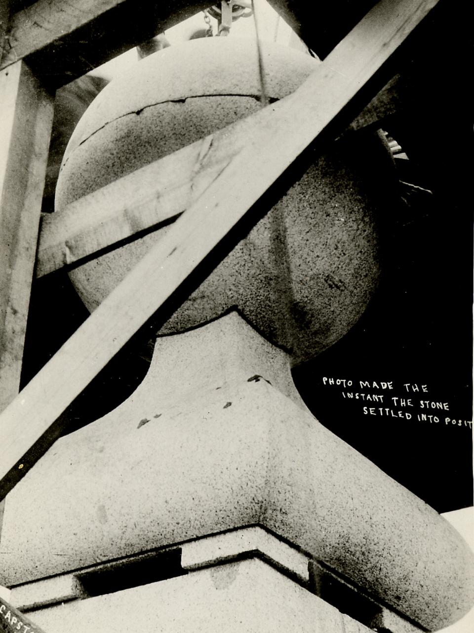 A journalist atop the temple to witness the laying of the capstone, including the deposit of a time capsule within it containing books, photos, letters, paper notes, medallions and coins (one of his own included) mused “on when, how, and under whose eyes it would be exhumed in some untold age in the future.”