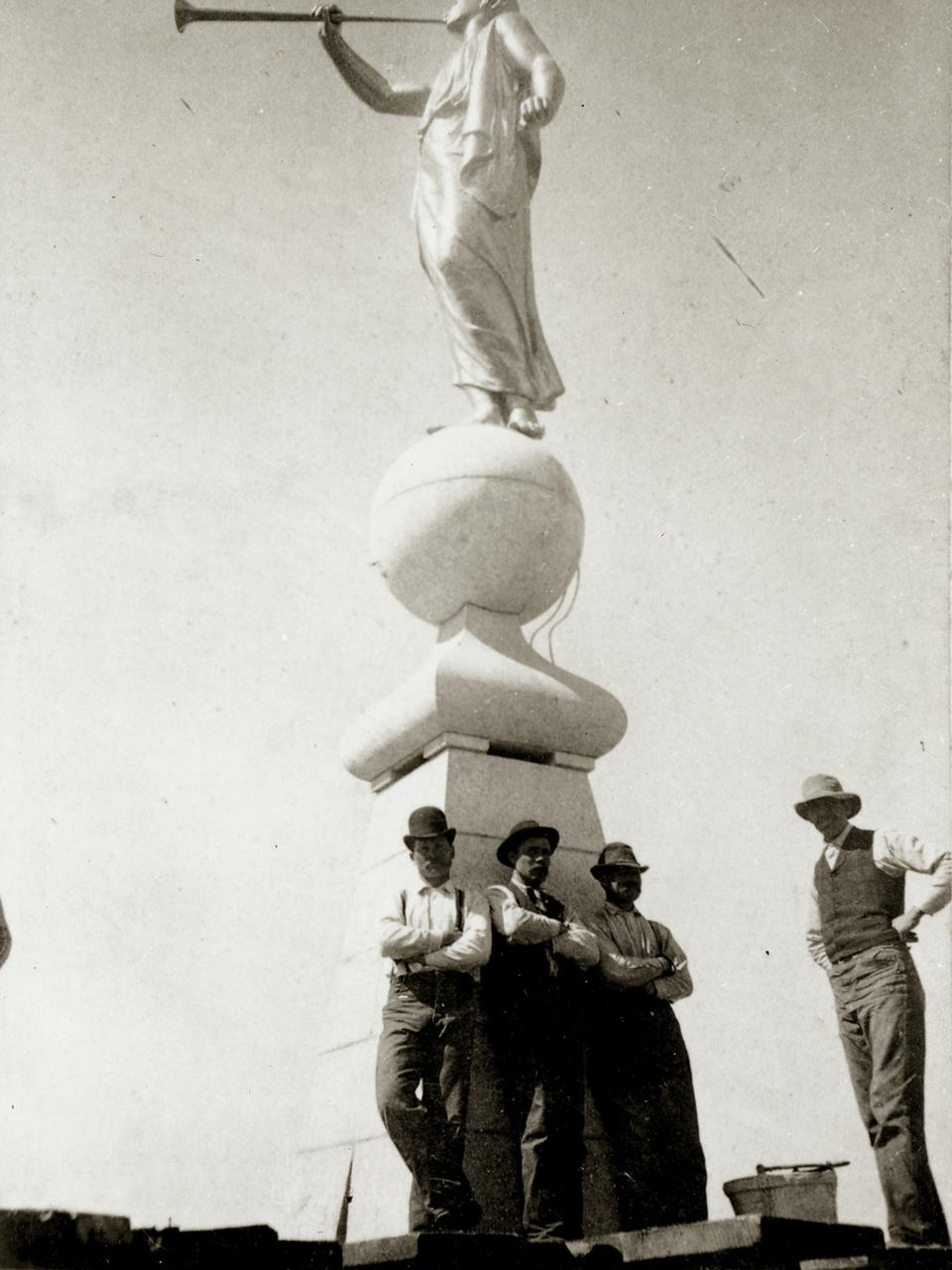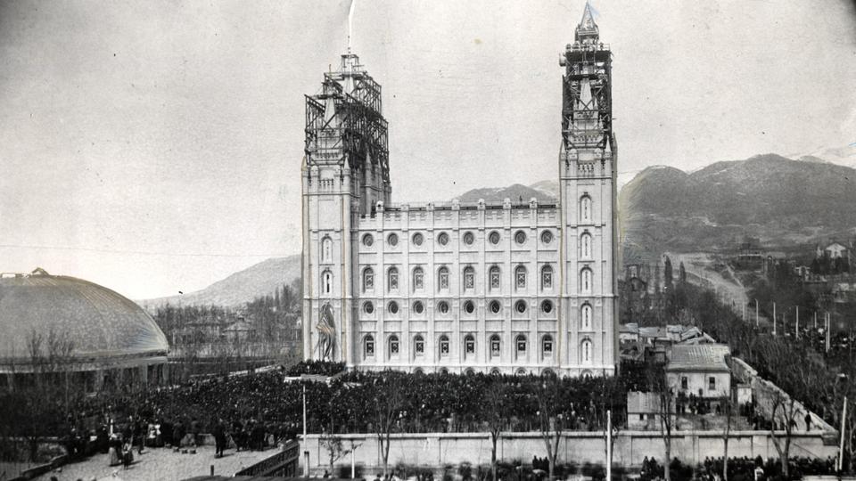 A crowd of 30,000 people gathered around the temple, with another 10,000 looking on from nearby streets, building roofs and trees. They were there to see the finishing piece placed atop this sacred worship space that had been under construction for 39 years. Even the early spring weather was wonderful. “Nothing more peaceful and beautiful could have been desired or prayed for than the day which was to see the consummation of so momentous an event,” the article says.