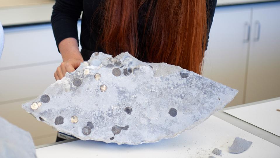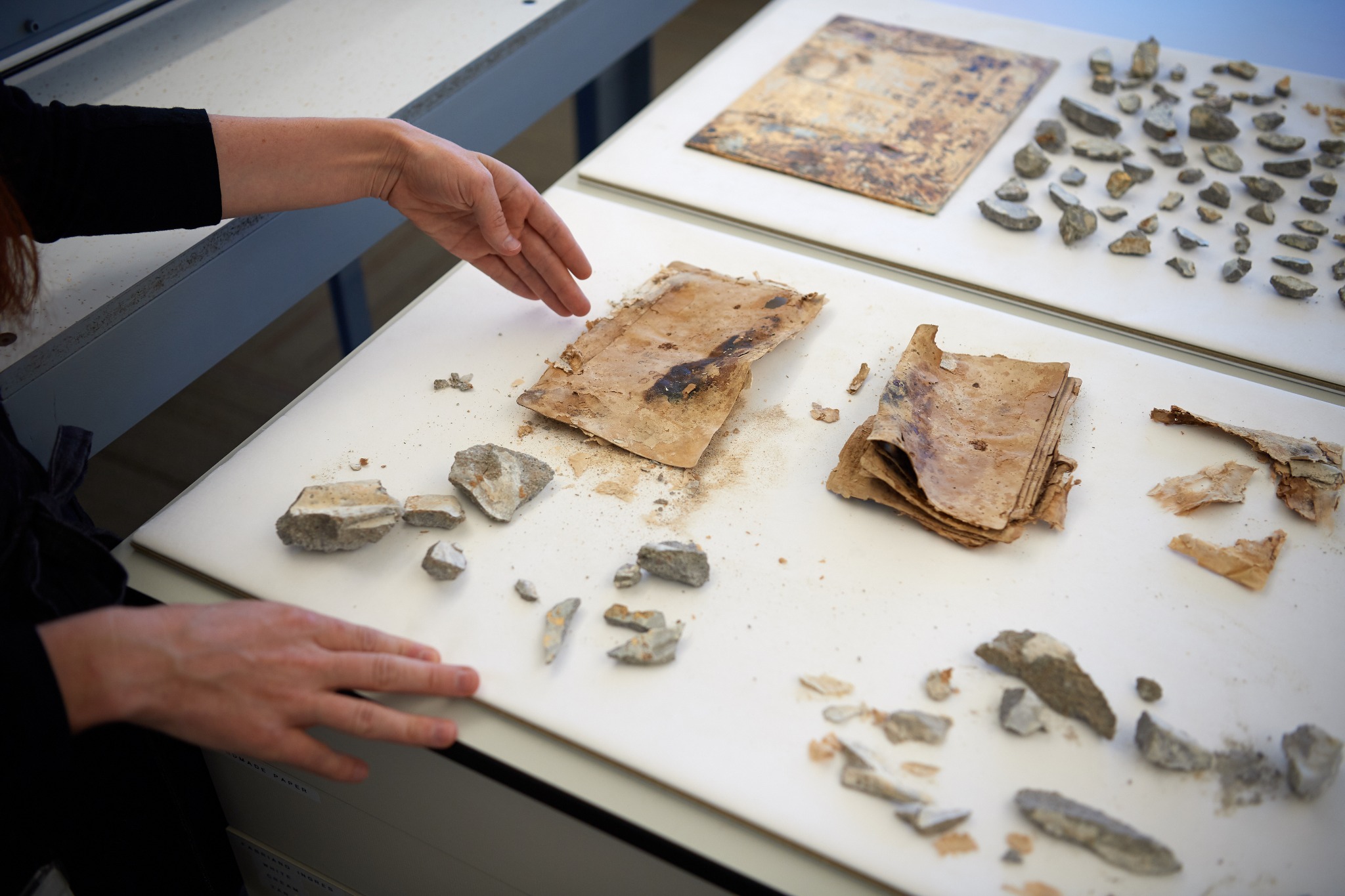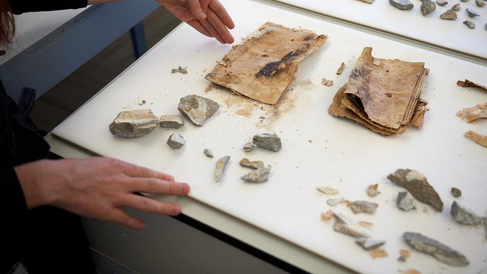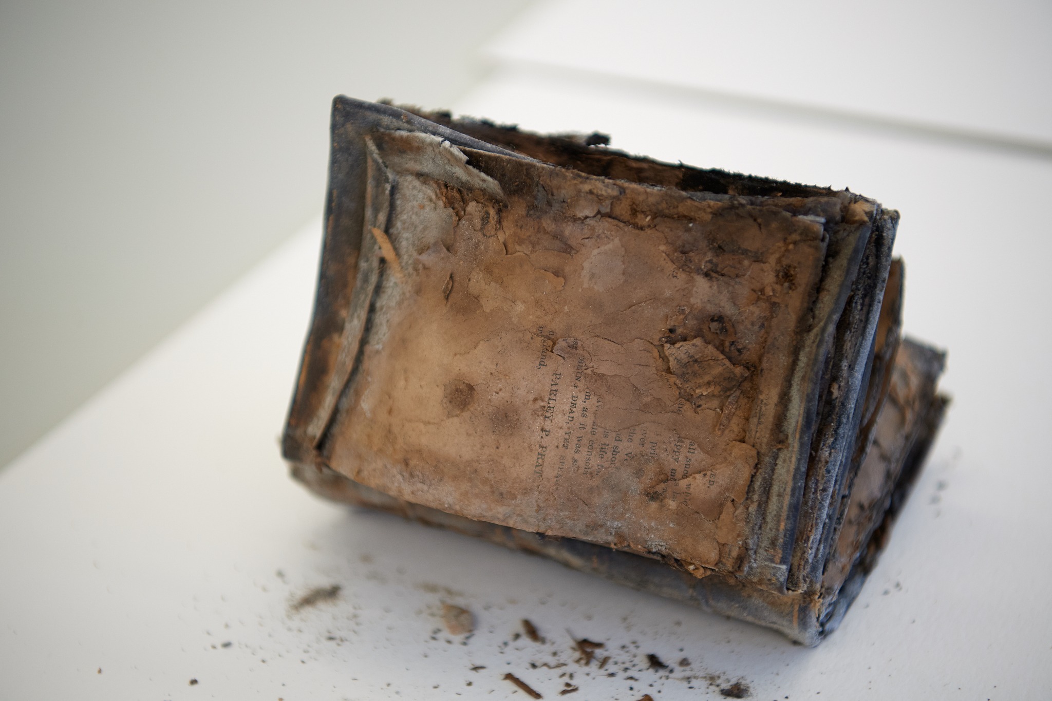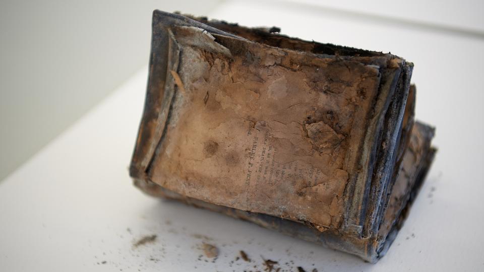 The books, photos, letters and notes, on the other hand, suffered significant water damage because they were surrounded by cement.