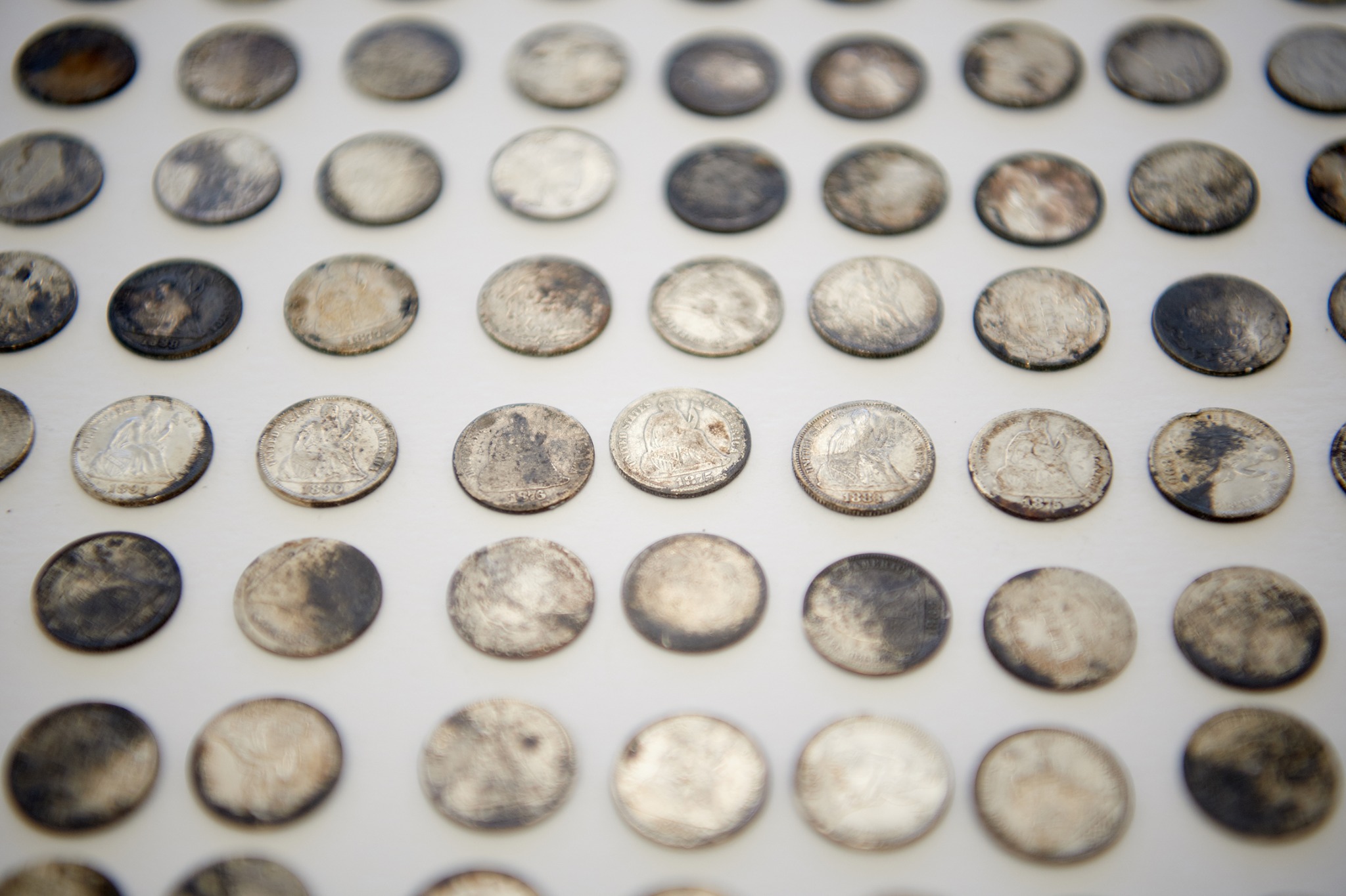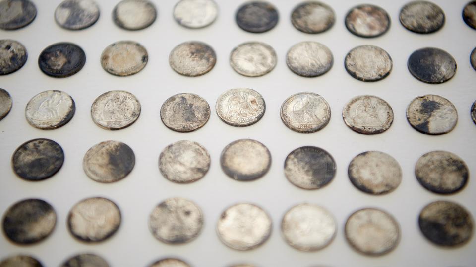 These coins were deposited in the capstone of the Salt Lake Temple on April 6, 1892. Some 400 coins—mostly nickels and dimes, some pennies, a few quarters—have been found inside the concrete.2020 by Intellectual Reserve, Inc. All rights reserved.“One of the really delightful things was finding coins that had been engraved,” said Emiline Twitchell, a conservator at the Church History Library. “We have some coins that had been ground down on one side so that a person’s name could be engraved. We have dimes, we have one penny and we have a couple of nickels that were engraved. Some of them appear to have been done professionally and some of them [look] like someone just scratched their name onto a nickel.”