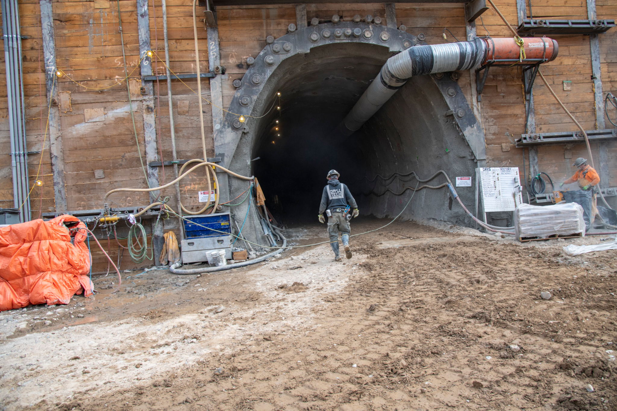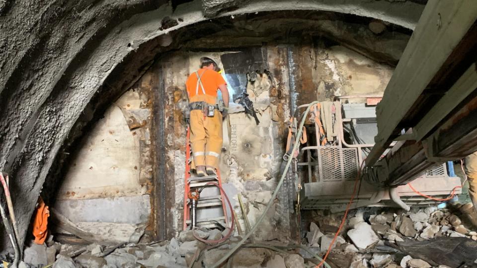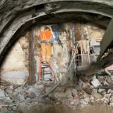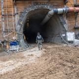 Crews have reached the end of a new 180-foot-long (55 meters) tunnel underneath North Temple street that will connect the Conference Center parking lot to the new underground temple entrance. The final work of removing the concrete wall that leads into the Conference Center parking structure will be done later.