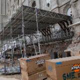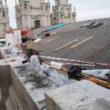Workers recently began placing scaffolding on the west and north sides of the temple. The photo below is of the north wall. Scaffolding already covers the south side and will eventually surround the entire structure.