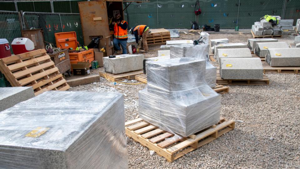 Crews continue to remove rows of stones from the temple walls for repair and cleaning. Each stone is carefully labeled and will be returned to its original spot.