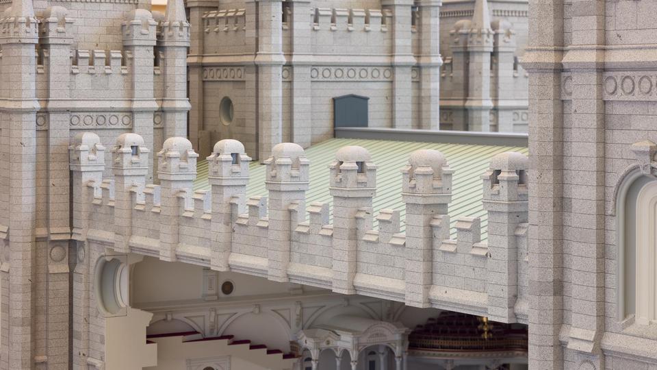 More than a century has passed since the public open house was held for the Salt Lake Temple, but an exhibit featuring a 1:32 scaled replica of the Mormon temple opened today that offers an open house experience of the magnificent building. Earlier this morning, The Church of Jesus Christ of Latter-day Saints unveiled the 88-inch tall, near-identical replica of the temple in the South Visitors’ Center on Temple Square. The permanent exhibit will be open to the public starting at 1:30 p.m. today.