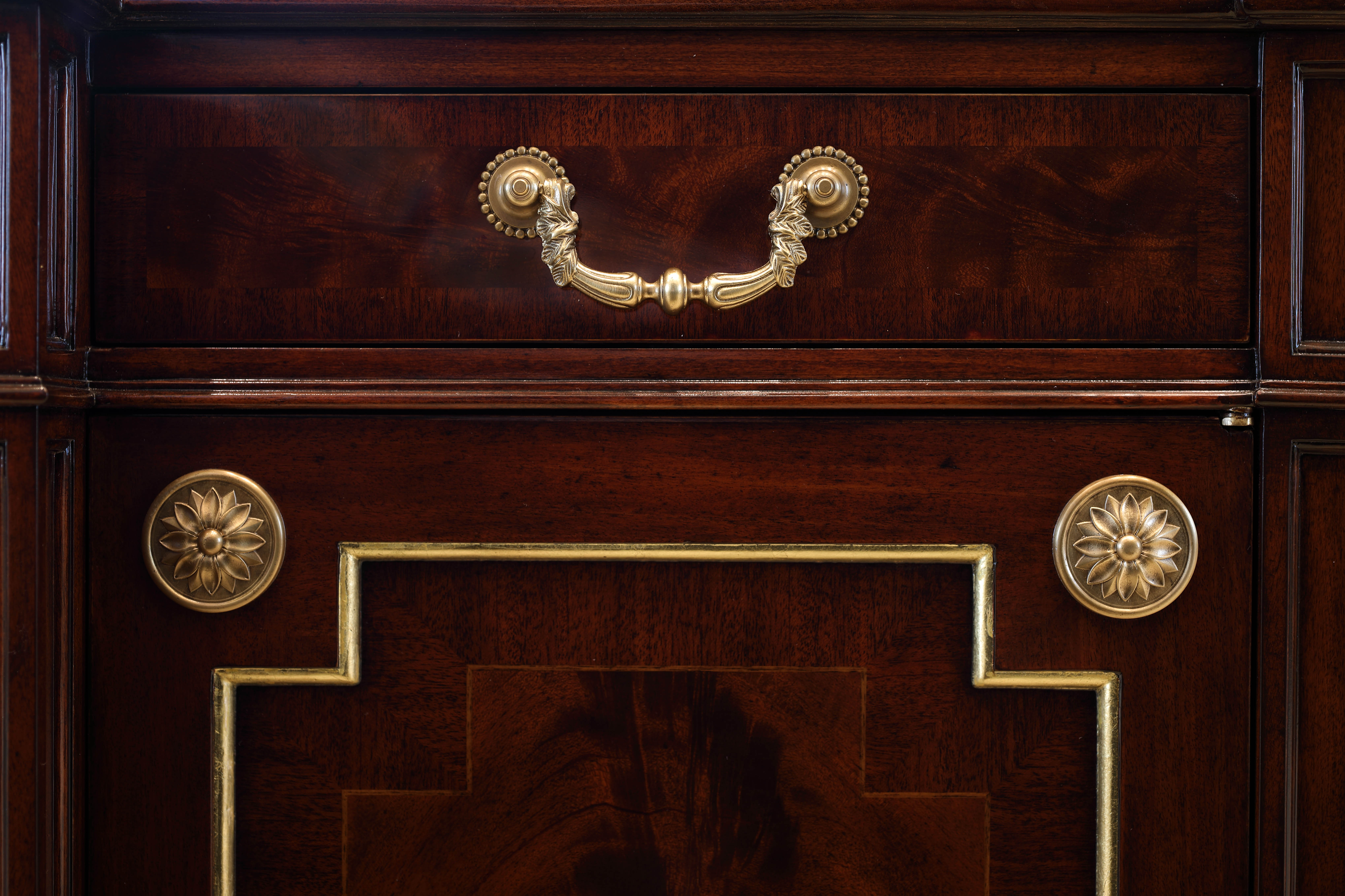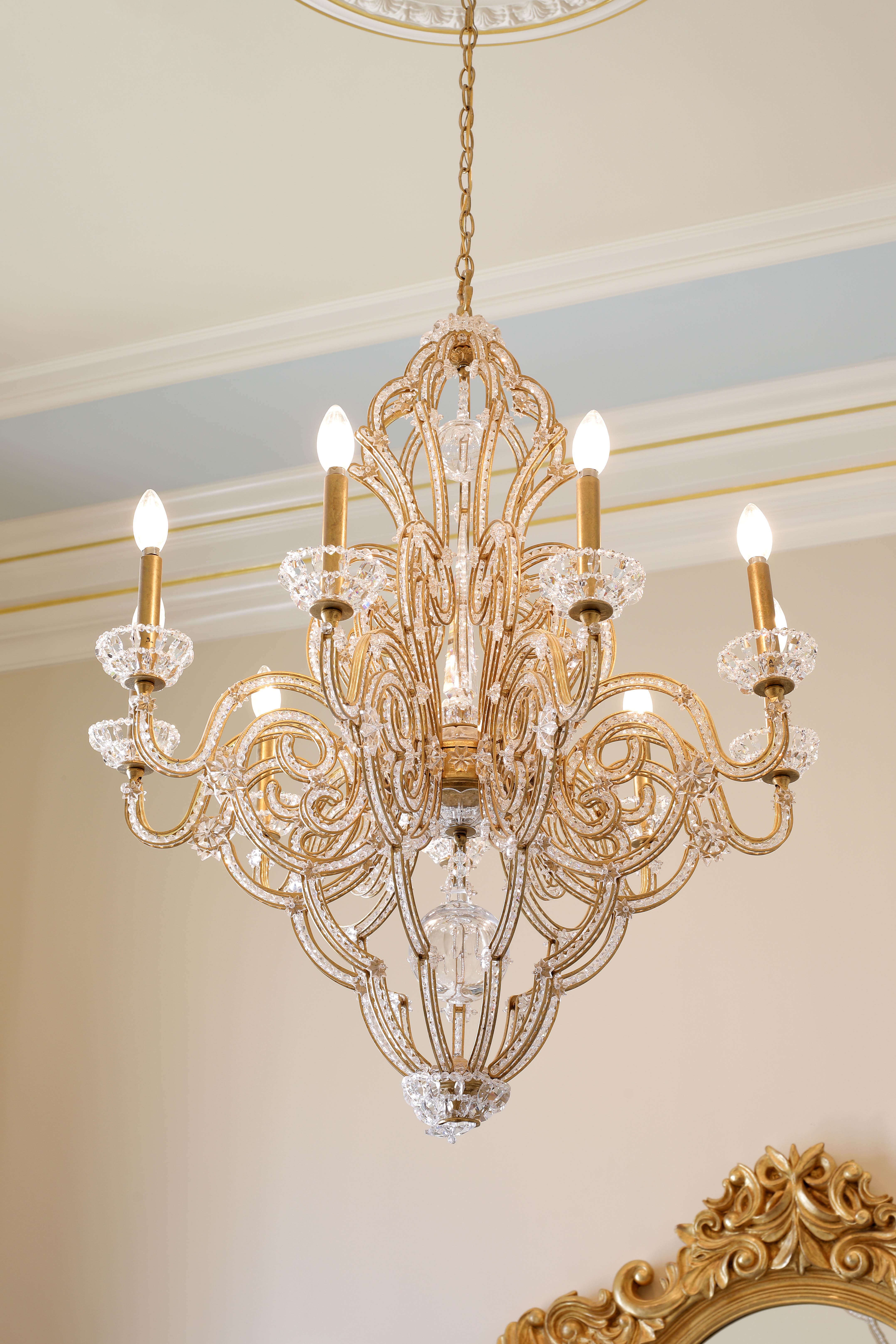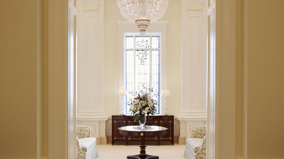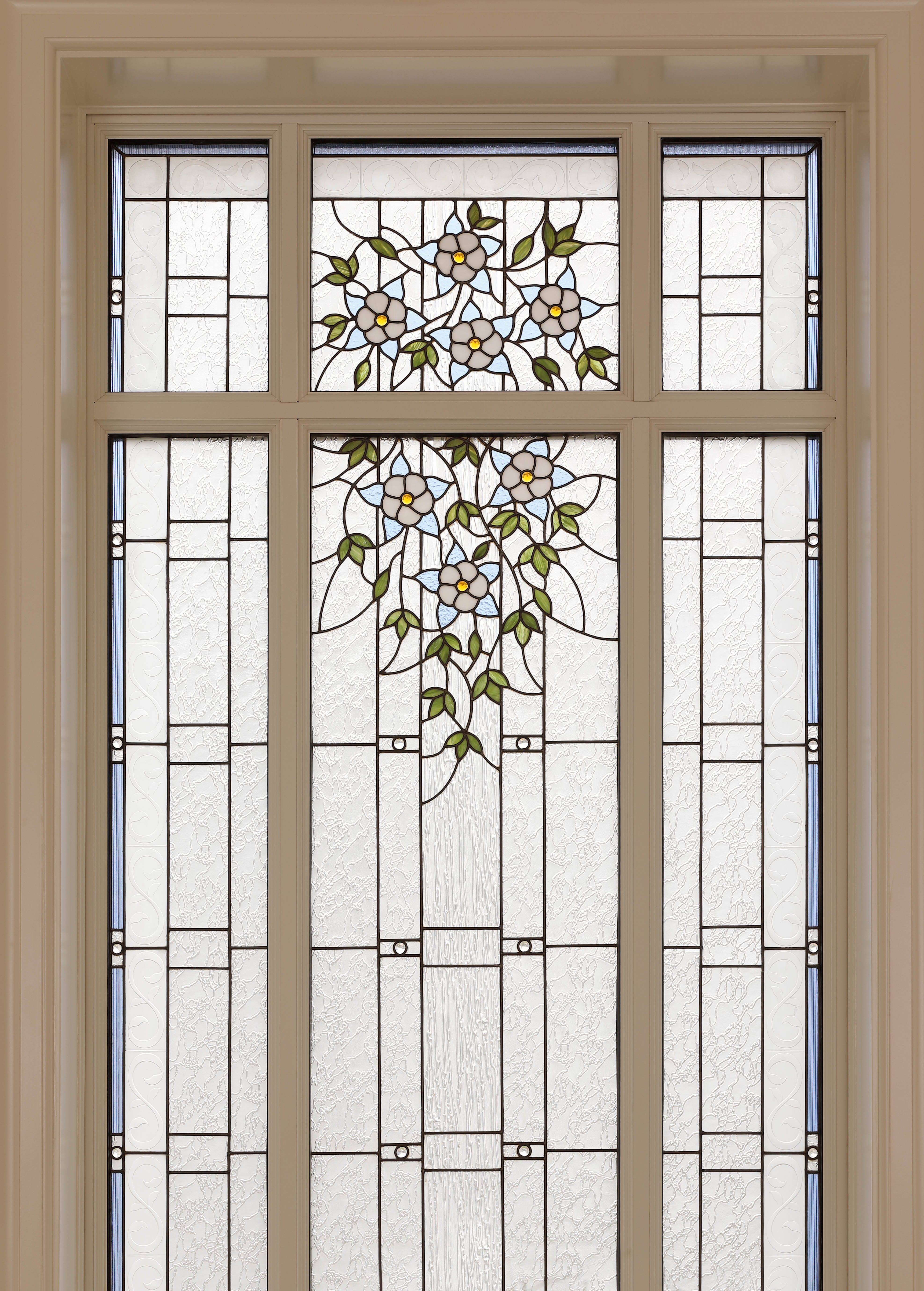 The interior features original art glass, custom rugs with Colombian motifs in blue and gold, wrought iron and bonze railings and a grand staircase. Also featured are carved wood and glass of the Cayena hibiscus, the official flower of Barranquilla City.