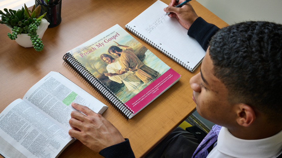Missionaries at the Provo Missionary Training Center look through the second edition of “Preach My Gospel,” a guide for sharing the gospel of Jesus Christ.2023 by Intellectual Reserve, Inc. All rights reserved.Preach My Gospel will inspire and help members and missionaries as they serve and invite people to enjoy the blessings of the gospel of Jesus Christ.
