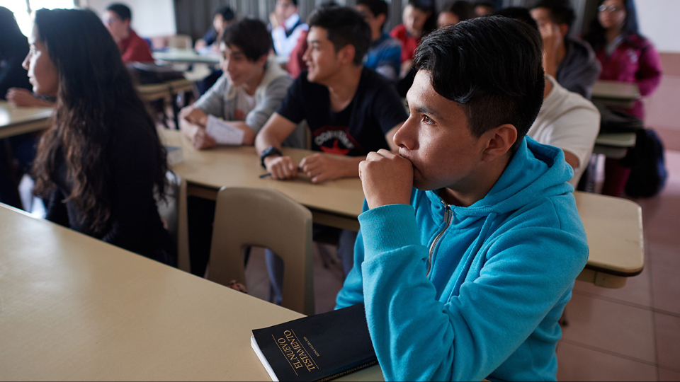 Young adult men and women participate in an institute class in Antofagasta, Chile. 2026 by Intellectual Reserve, Inc. All rights reserved.In a similar invitation for seminary-aged youth, President Oaks promised that regular attendance would help youth feel God’s love and build emotional and spiritual strength.