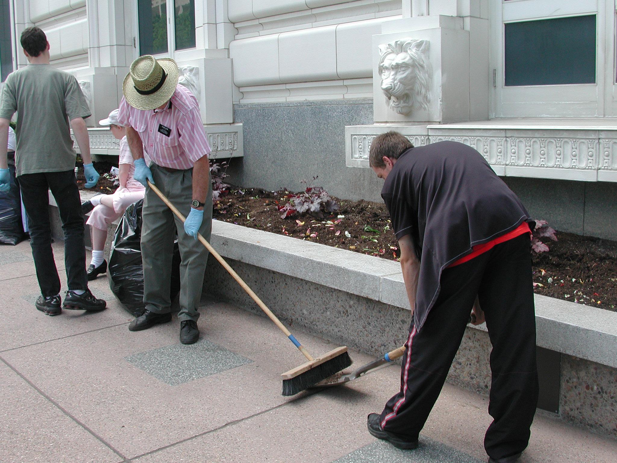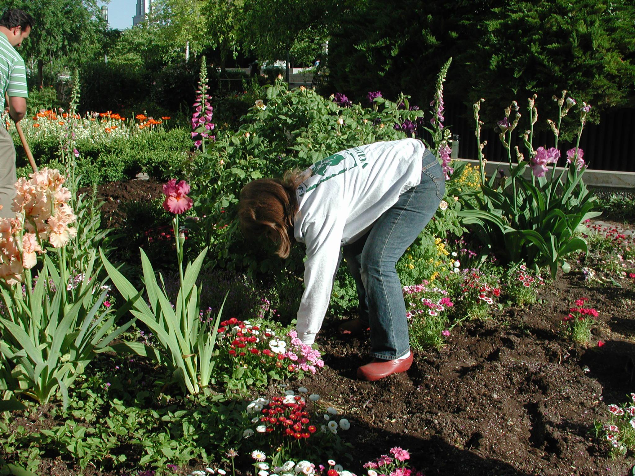 A knowledge of plants and gardening techniques proves helpful when volunteering for a Temple Square garden mission, but hardworking hands become a more important asset.