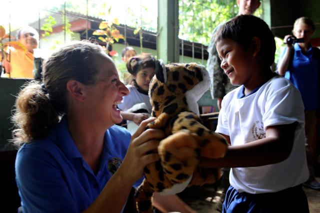 During Comfort’s stop in Guatemala in early July, Broby and Lenberg had the opportunity to run a “Give a Kid a Backpack” event at a local primary school. Together, they taught children about coughing into arms, dental hygiene, nutrition, hand washing and eye protection. After teaching, they gave the children backpacks filled with school supplies and stuffed animals.