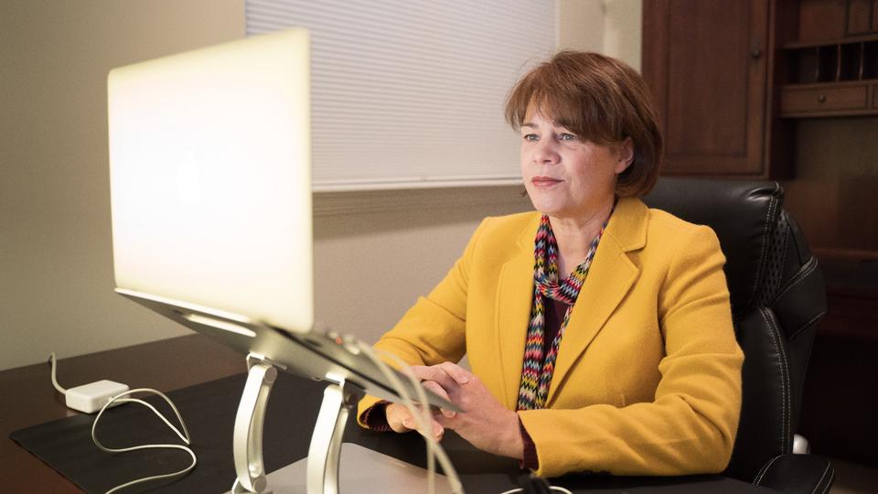 Sister Eubank, who is also the first counselor in the Church’s Relief Society General Presidency, participated in the plenary session from her Utah home because of the pandemic on Saturday, October 17, 2020.