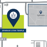 A map showing the location of the Ephraim Utah Temple.2021 by Intellectual Reserve, Inc. All rights reserved.